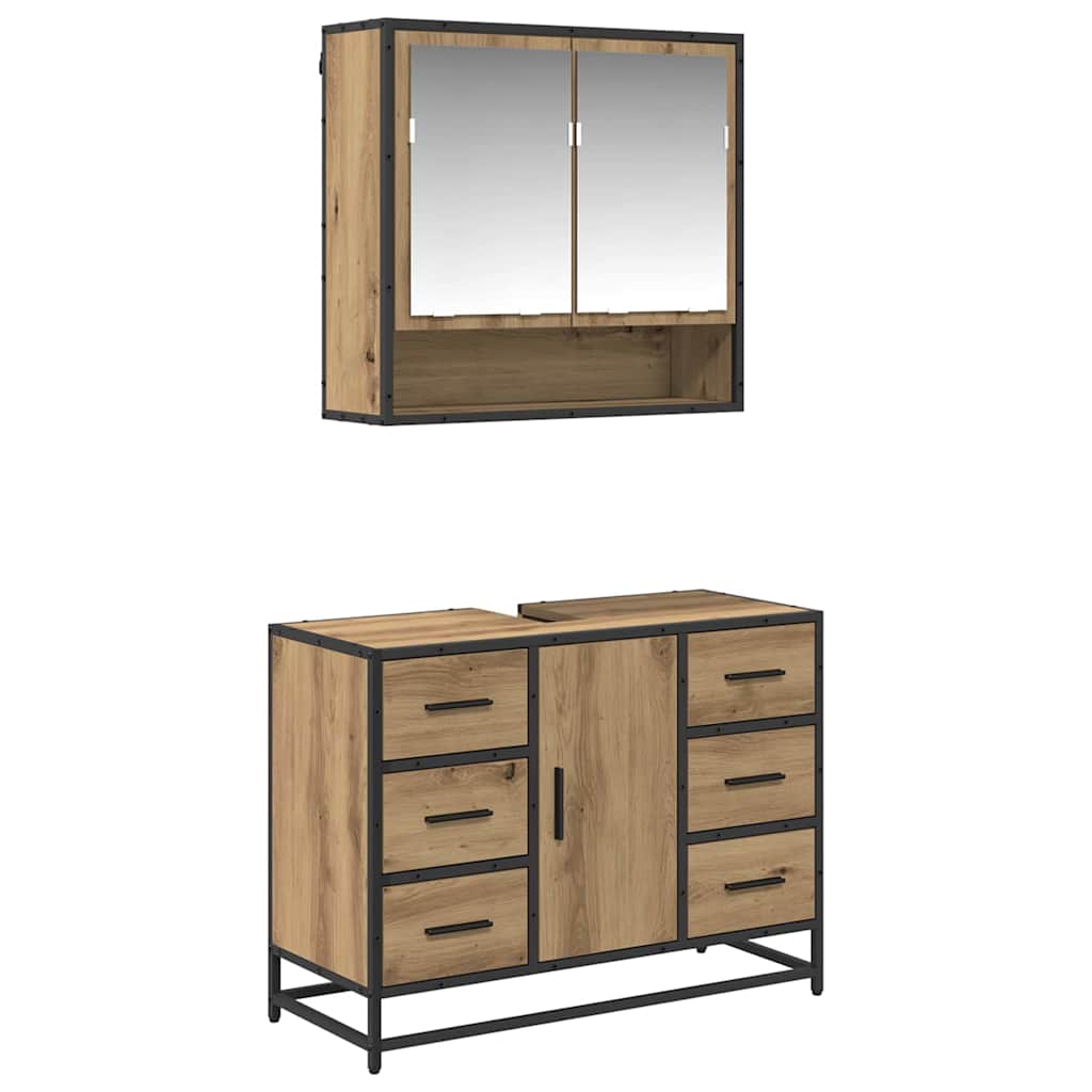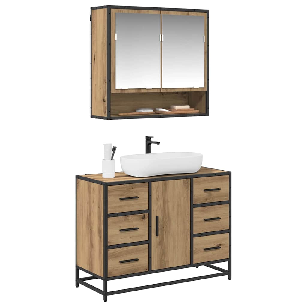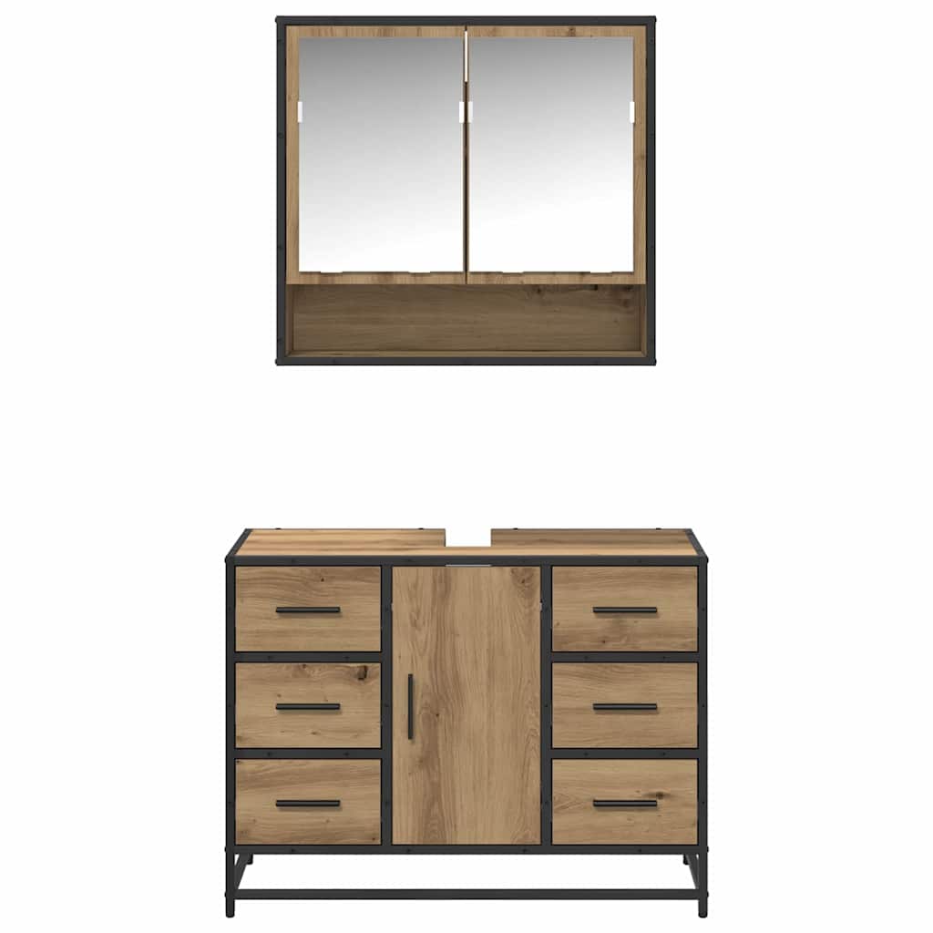 Set de mobilier pentru baie cu sertar 2 pcs stejar artizanal