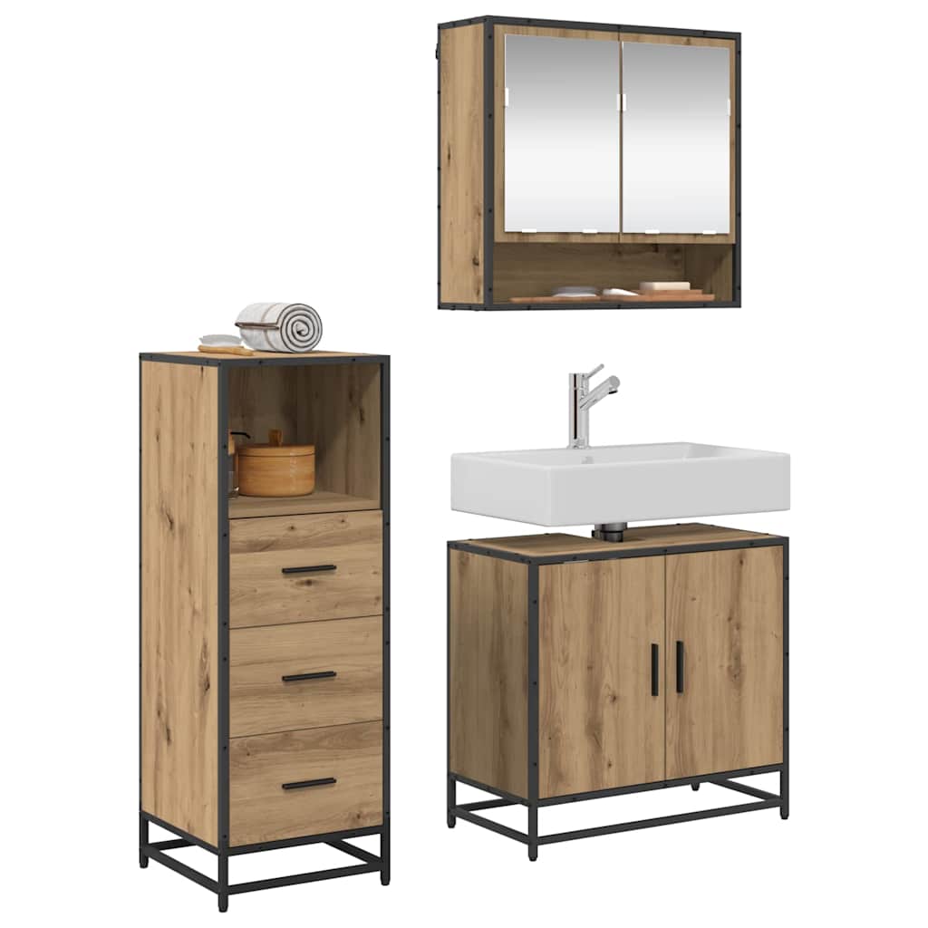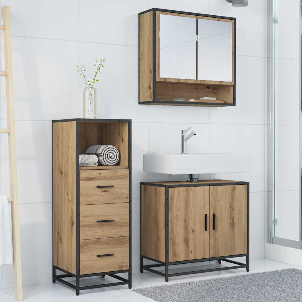 Set de mobilier pentru baie cu sertar 3 pcs stejar artizanal