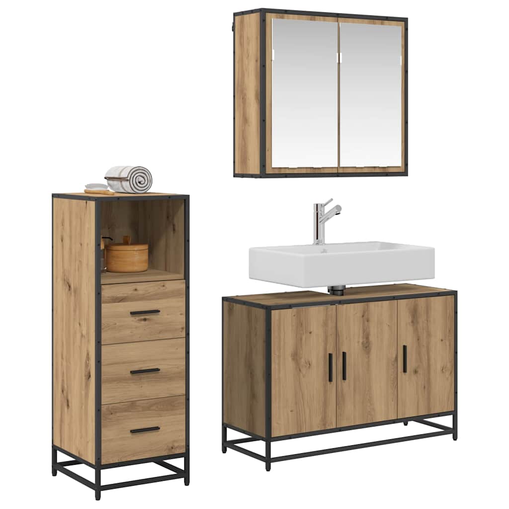 Set de mobilier pentru baie cu sertar 3 pcs stejar artizanal