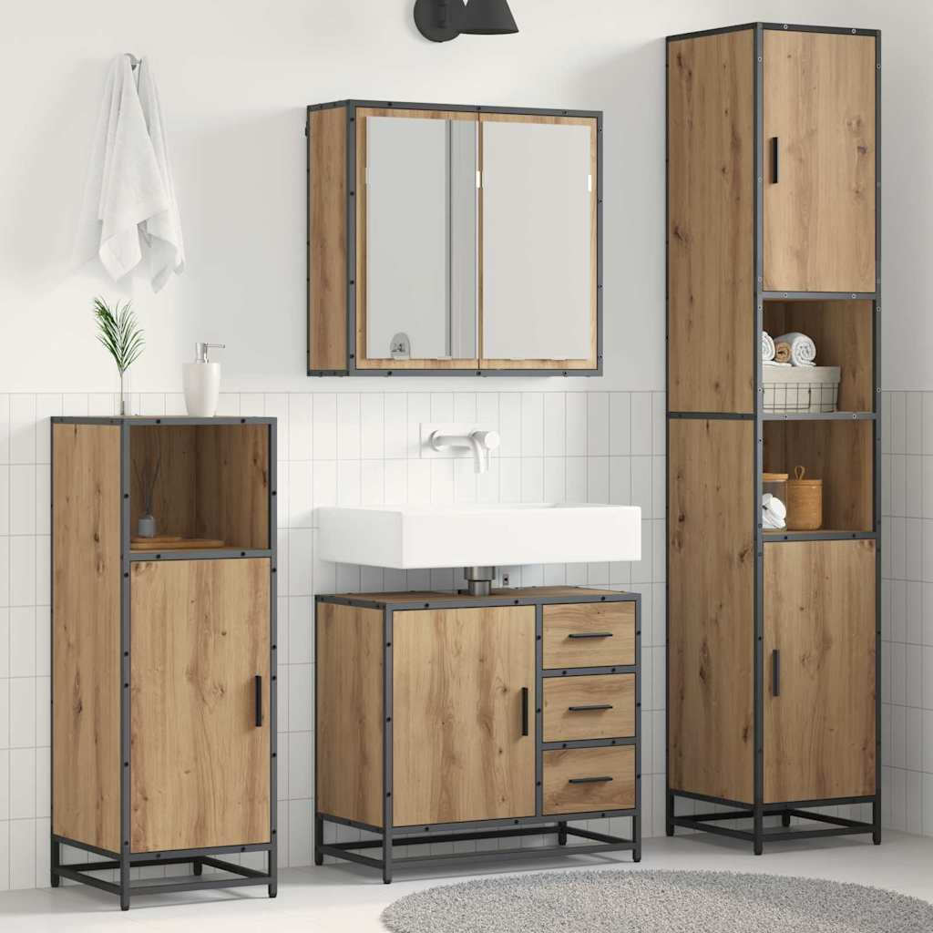 Set de mobilier pentru baie cu sertar 3 pcs stejar artizanal