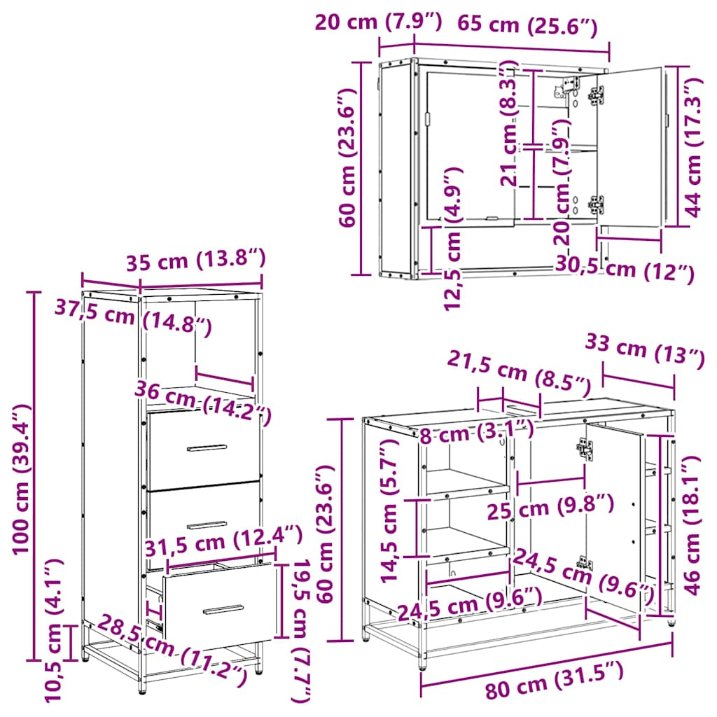 Fii primul care scrii o recenzie pentru „Set de mobilier pentru baie cu sertar 3 pcs stejar artizanal”