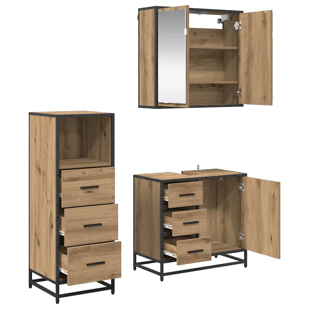 Set de mobilier pentru baie cu sertar 3 pcs stejar artizanal