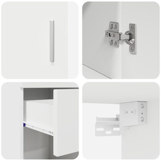 - Lemn prelucrat: Setul e fabricat din lemn prelucrat, asigurându-i rezistența și durabilitatea. Textura netedă face dulapurile să arate elegant, dar și robust. E perfect pentru a rămâne în formă și aspect bun pe termen lung și e o soluție de stocare de încredere.
