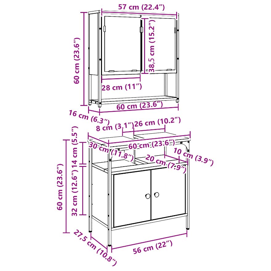 Setul modern de mobilier pentru baie îmbină un look cool cu un design inteligent, ideal pentru a revitaliza orice baie. Are un vibe proaspăt și contemporan, fiind realizat din lemn prelucrat de calitate, care îți oferă stabilitate solidă și utilizare pe termen lung. Setul conține două piese separate, perfecte pentru a organiza lucrurile de baie și a le ascunde. Liniile elegante și stilul simplu se potrivesc perfect cu casele care iubesc decorul modern.
