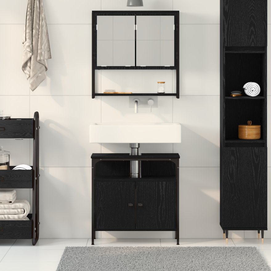 Set de mobilier pentru baie cu ușă 2 pcs Negru 60 x 30 x 60 cm