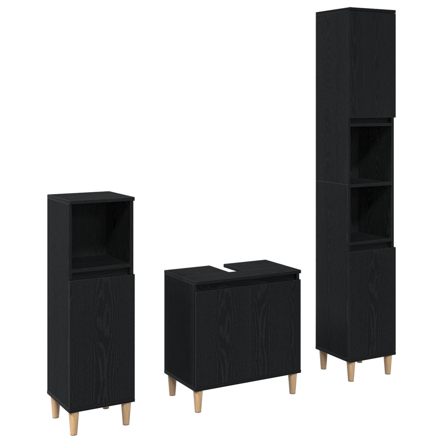 Set de mobilier pentru baie cu ușă 3 pcs Negru 30 x 30 x 180 cm