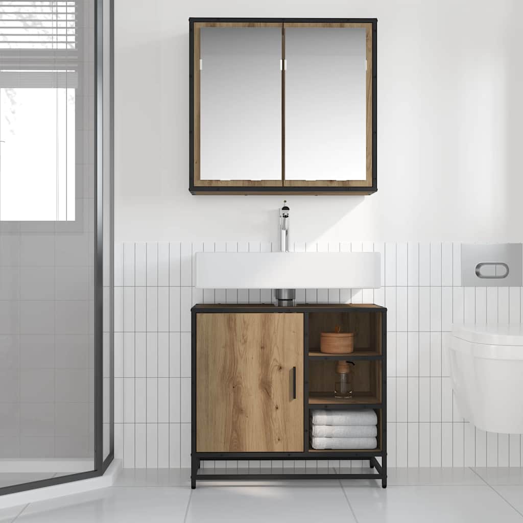 - Funcționalități Faine: Primești un cabinet de oglindă și un cabinet pentru chiuvetă, ambele oferind mult spațiu pentru lucrurile tale de baie. Oglinda e perfectă pentru îngrijire personală și aduce lumină, în timp ce cabinetul pentru chiuvetă ascunde tot ce-ți trebuie pentru igienă.