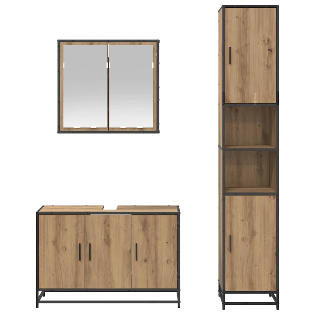 Set de mobilier pentru baie Pe perete 3 pcs stejar artizanal