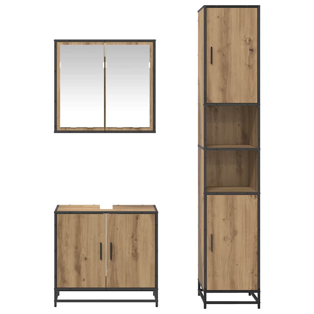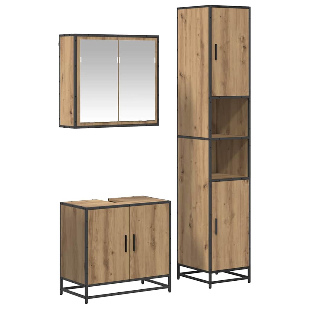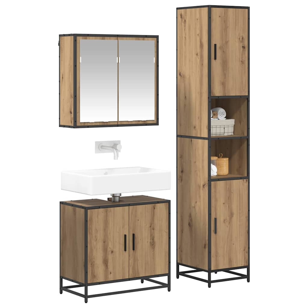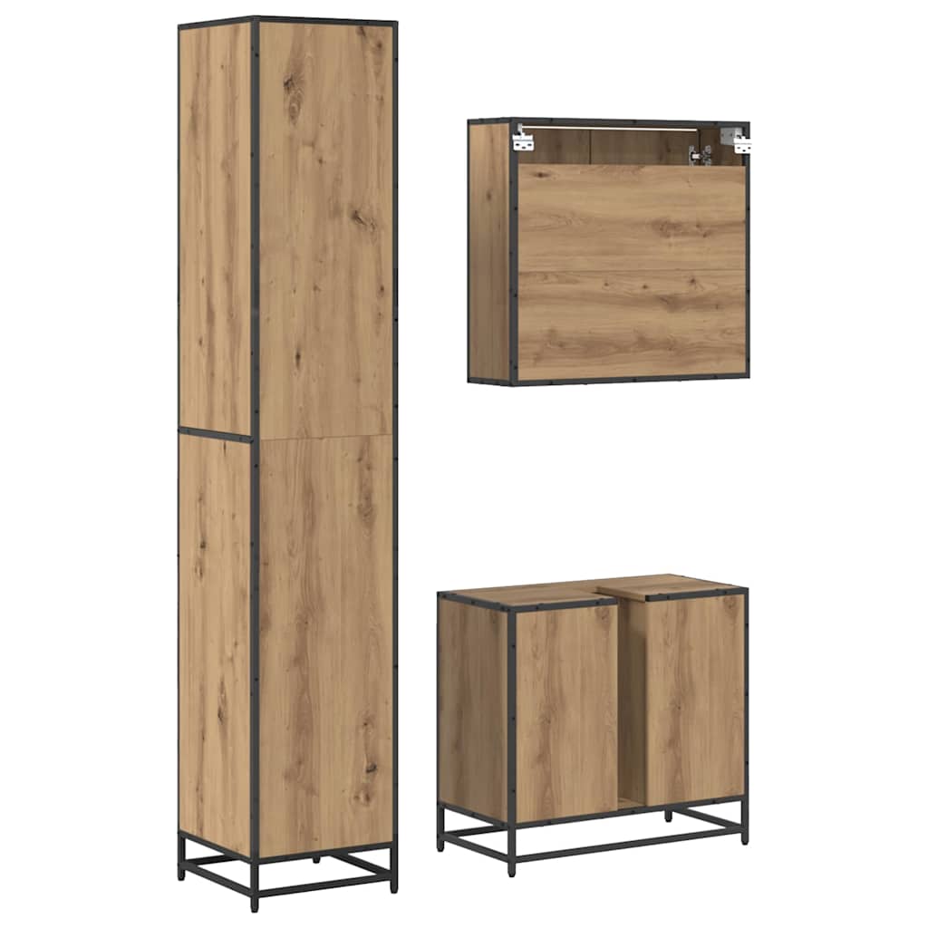 Set de mobilier pentru baie Pe perete 3 pcs stejar artizanal