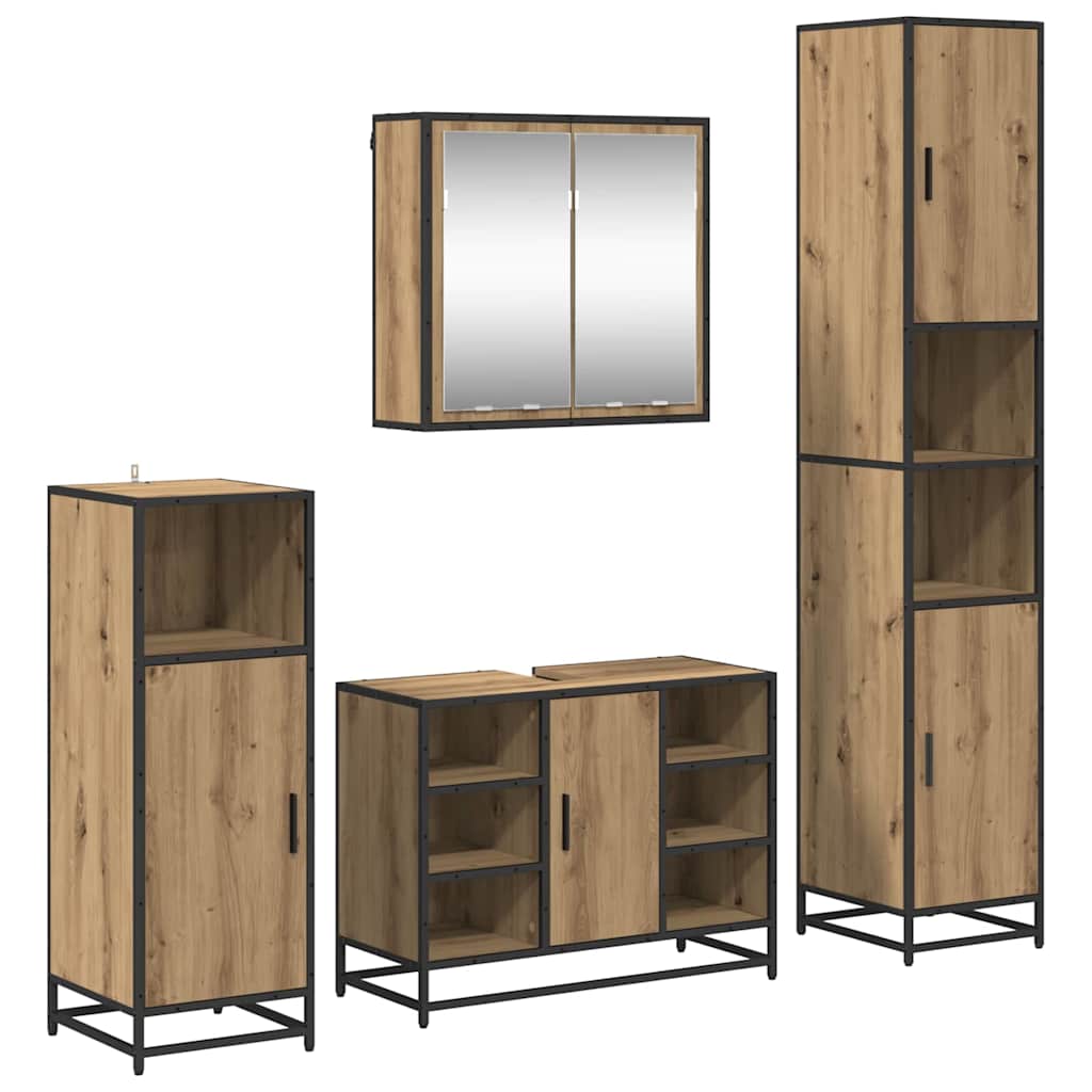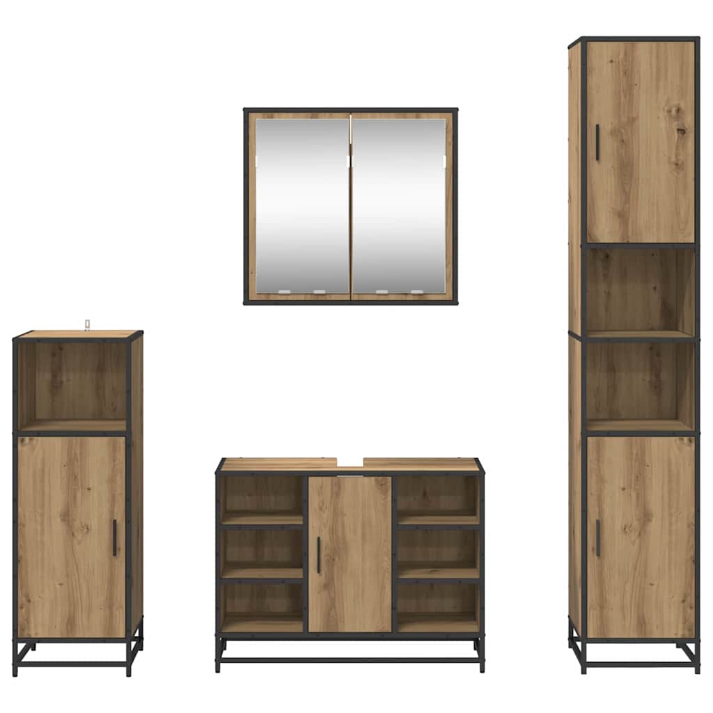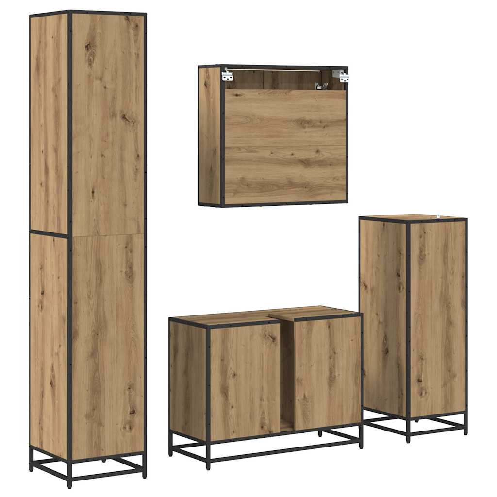 Set de mobilier pentru baie Pe perete 4 pcs stejar artizanal