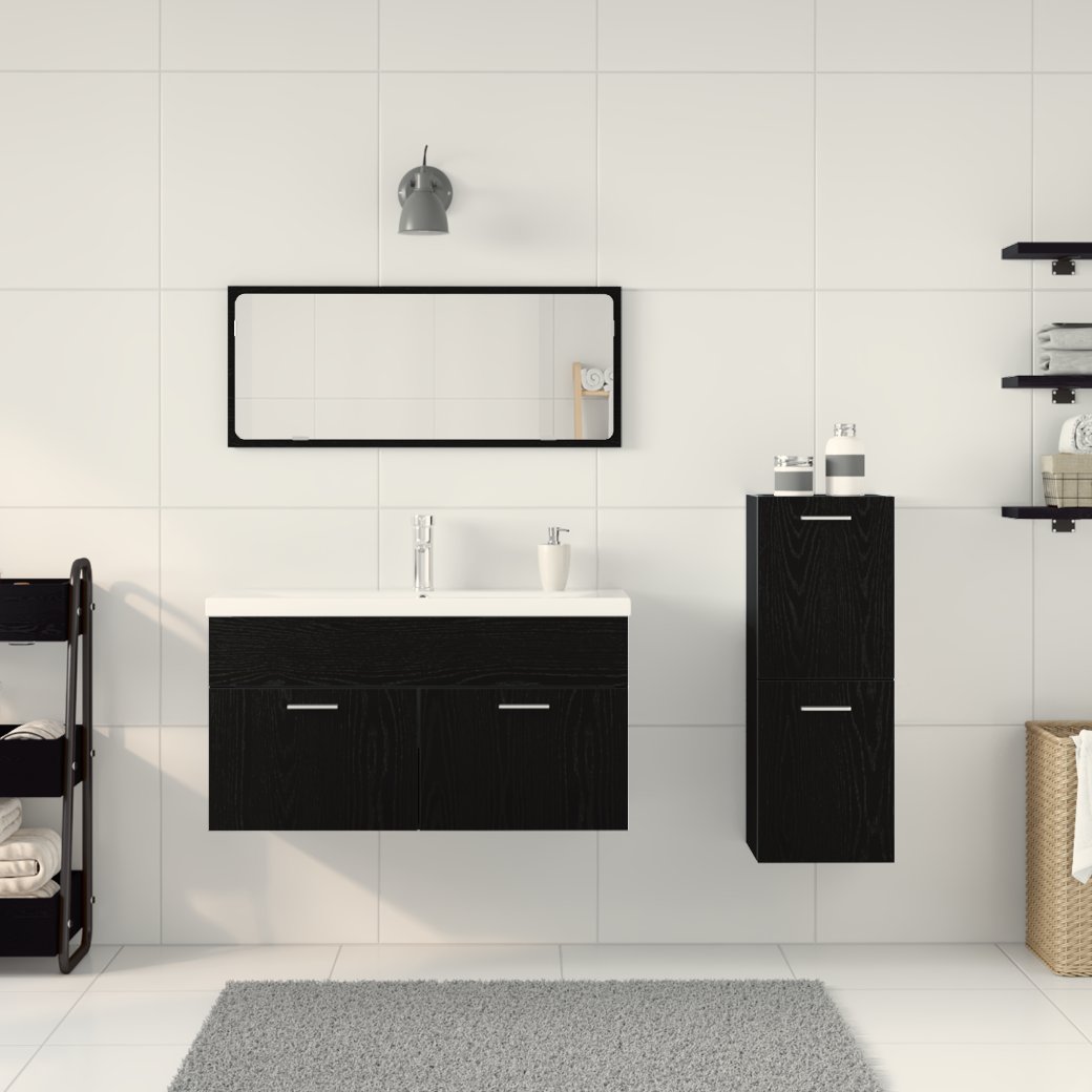 Set de Mobilier pentru Baie Pe perete cu ușă 4 pcs Stejar Negru
