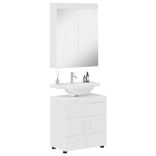 Set de mobilier pentru baie TULUM Alb lucios Lemn compozit