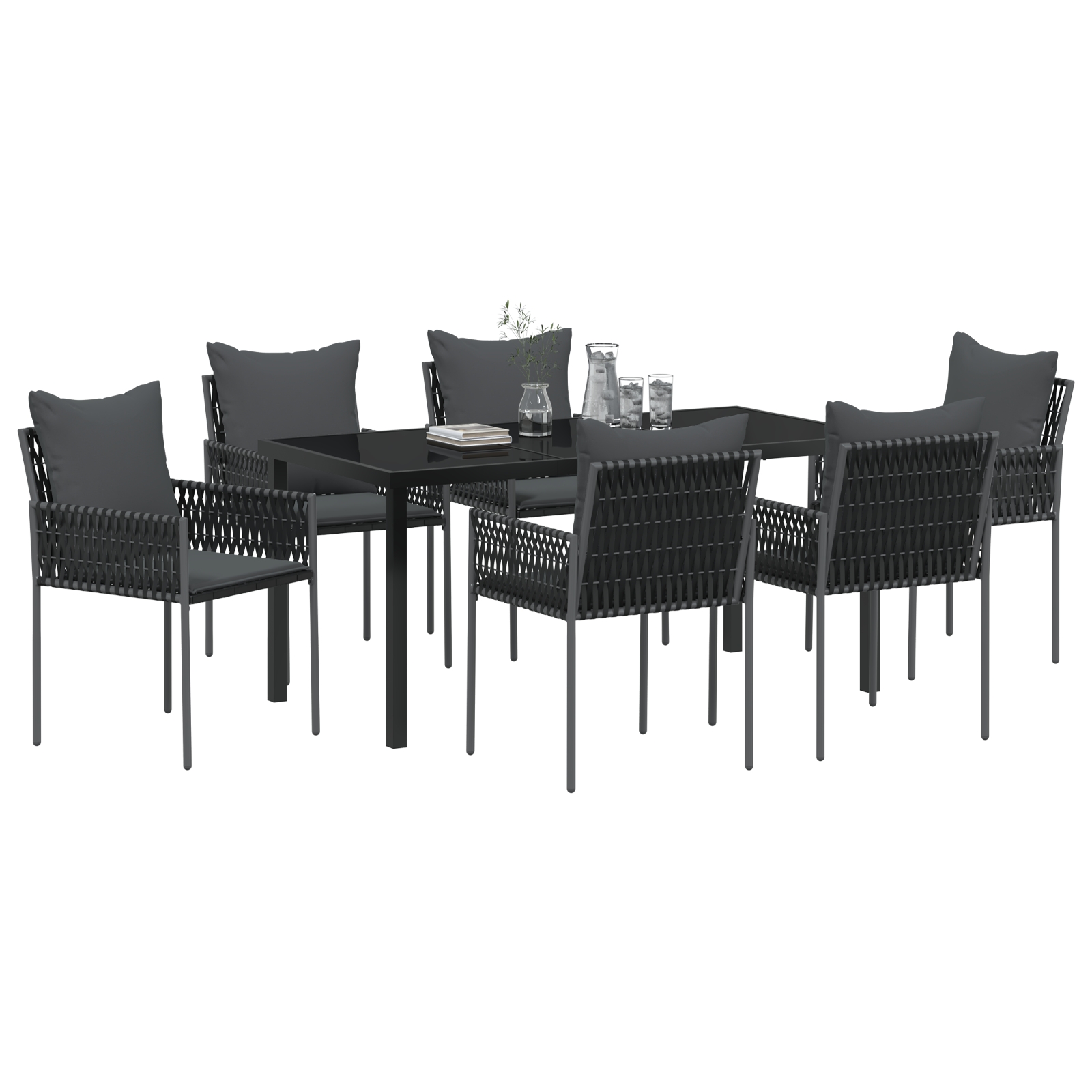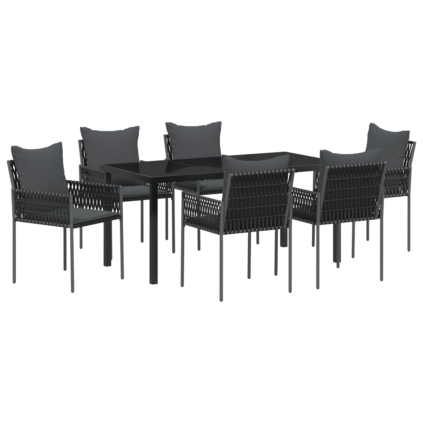 Set de masă pentru grădină 7 pcs Negru Rattan poli