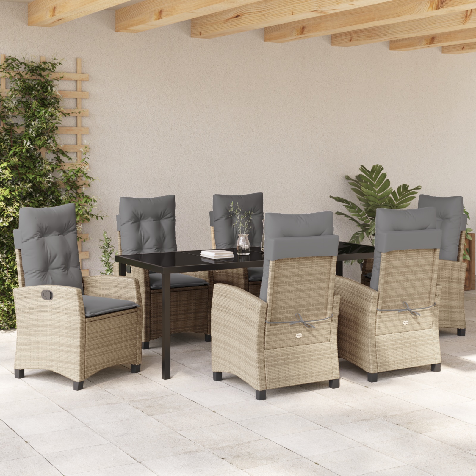Set de Mobilier pentru Grădină de 7 Piese cu Pernă Bej Poliratan