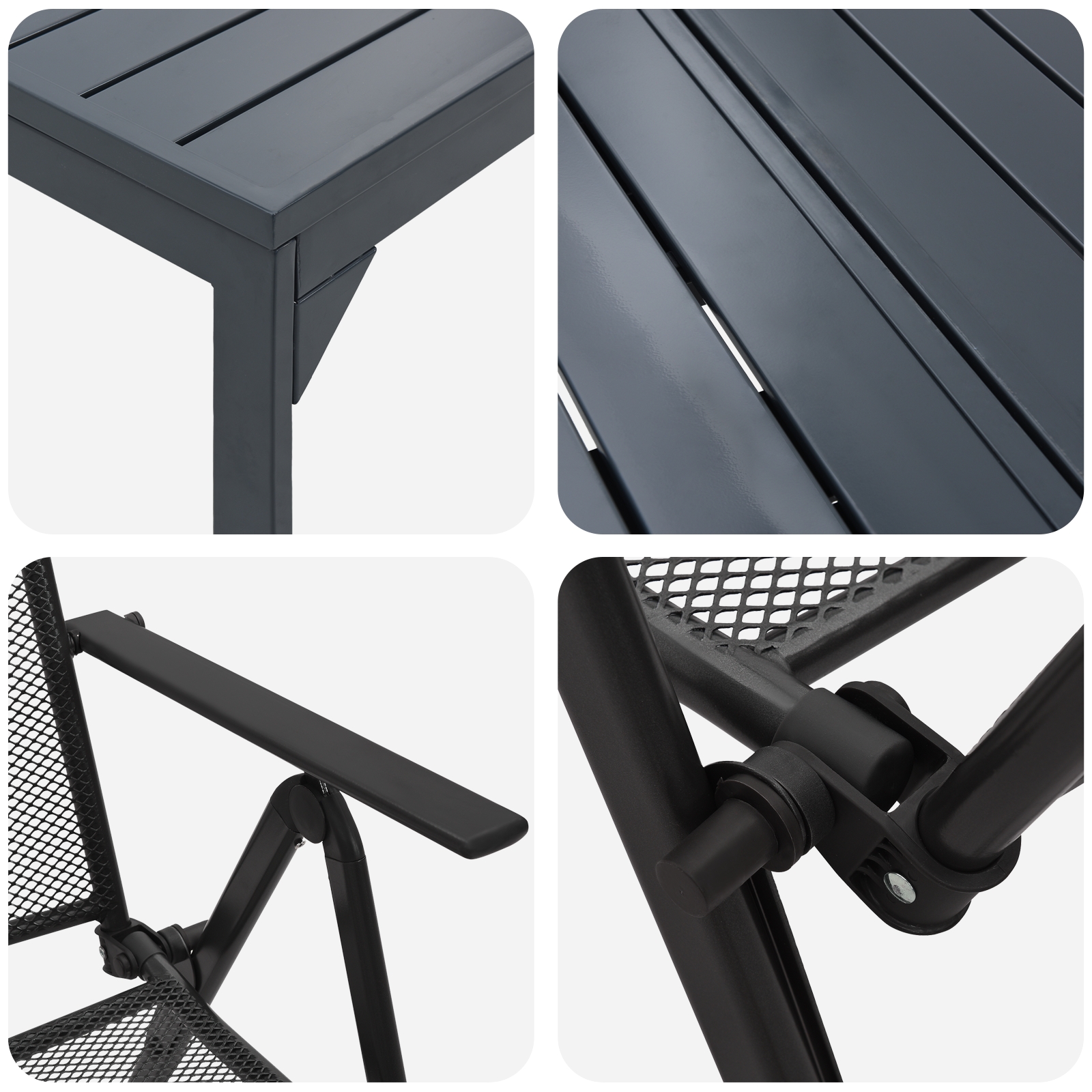 Setul ăsta de masă pentru grădină e o alegere tare pentru întâlniri afară. Forma lui dreptunghiulară elegantă îmbunătățește aspectul oricărei terase sau grădini. Finisajul antracit aduce simplitate modernă, cu linii clare și un vibe minimalist. Ideal pentru petrecerile de vară, combină stilul cu practicitatea. E confortabil pentru familie și prieteni, perfect pentru mesele în aer liber. Eleganța lui discretă se potrivește cu orice tip de mediu exterior, aducând o notă de clasă și ușurință.