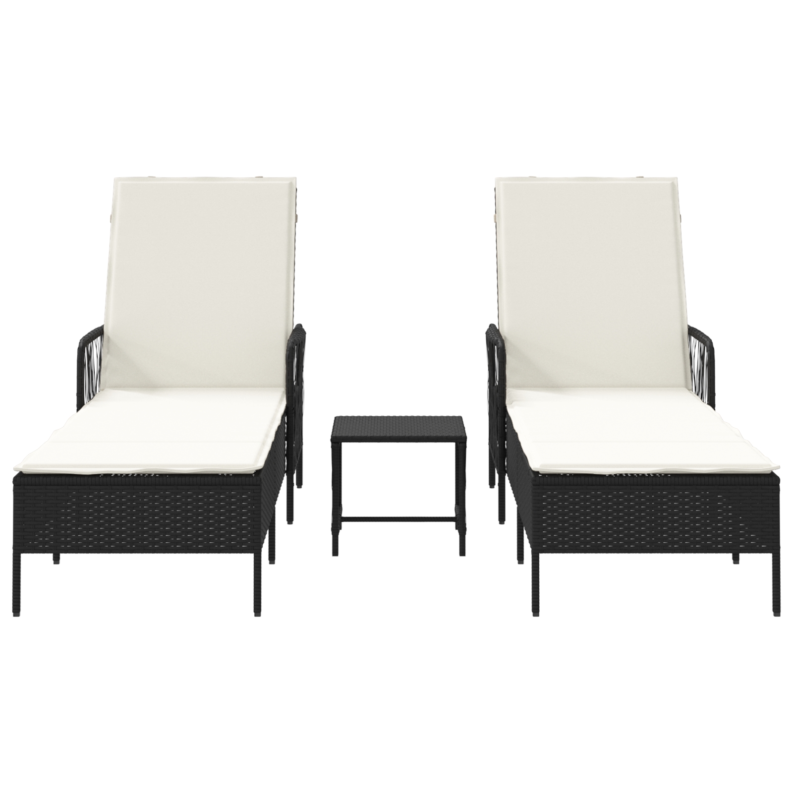Șezlong cu pernă 2 pcs Negru 35 x 35 x 32cm poliratan