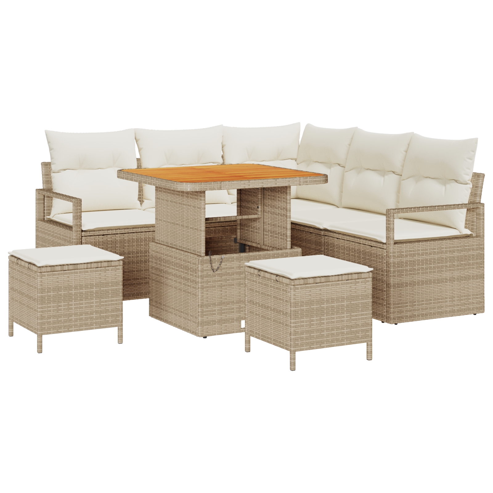 Set de canapele pentru grădină cu pernă 8 pcs Bej Rattan poli