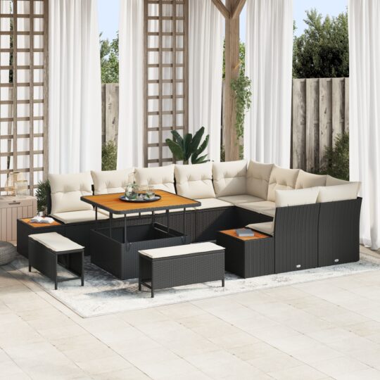 Set de canapele pentru grădină 12 pcs Negru Rattan poli