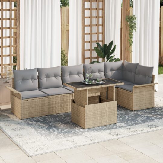 Set de canapele pentru grădină cu pernă 7 pcs Bej Rattan poli