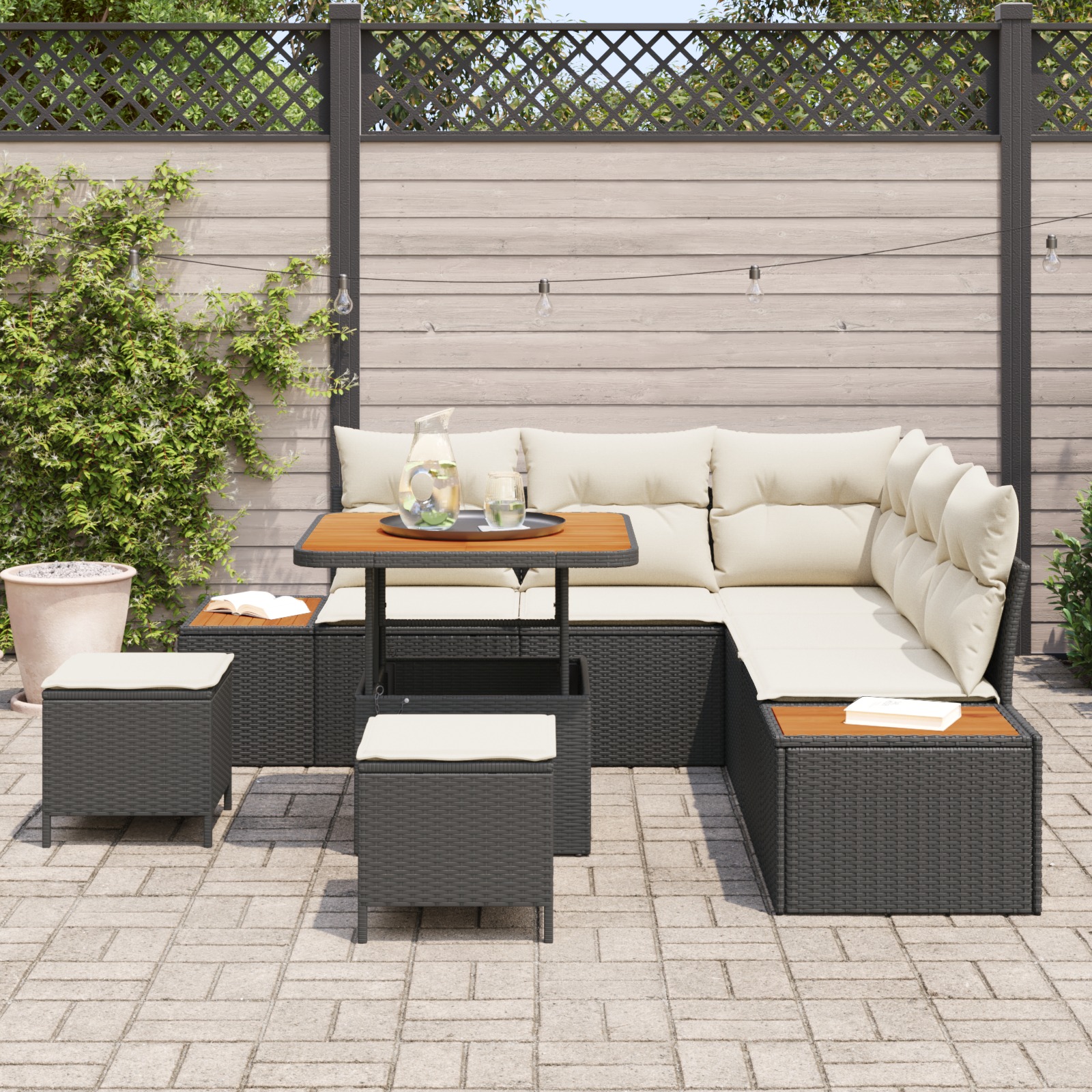 Set de canapele pentru grădină cu pernă 8 pcs Negru Rattan poli