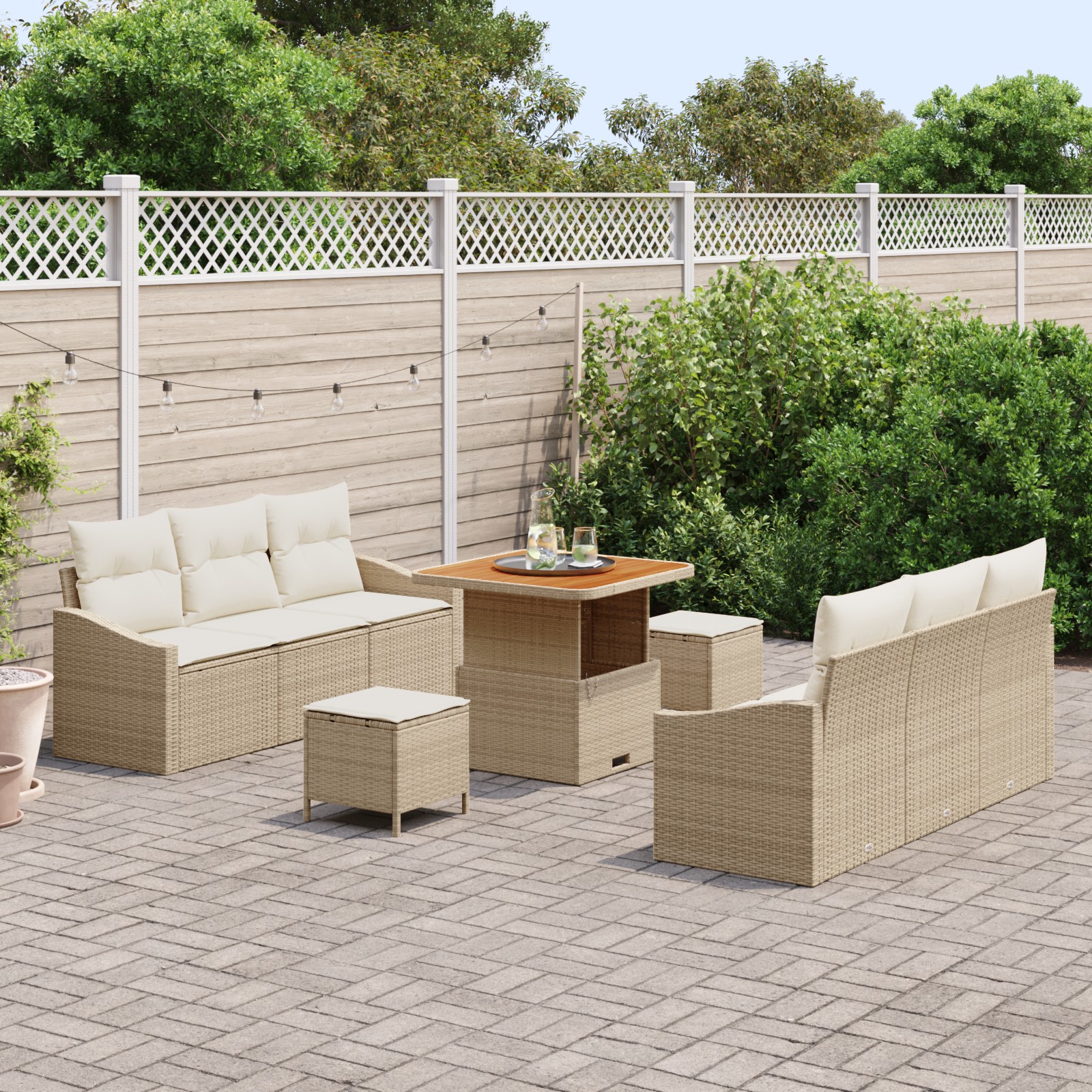 Set de canapele pentru grădină cu pernă 9 pcs Bej Rattan poli