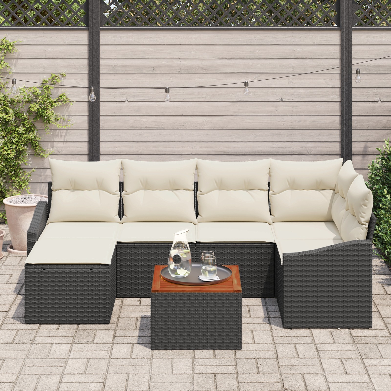 Set de canapele pentru grădină cu pernă 7 pcs Negru Rattan poli