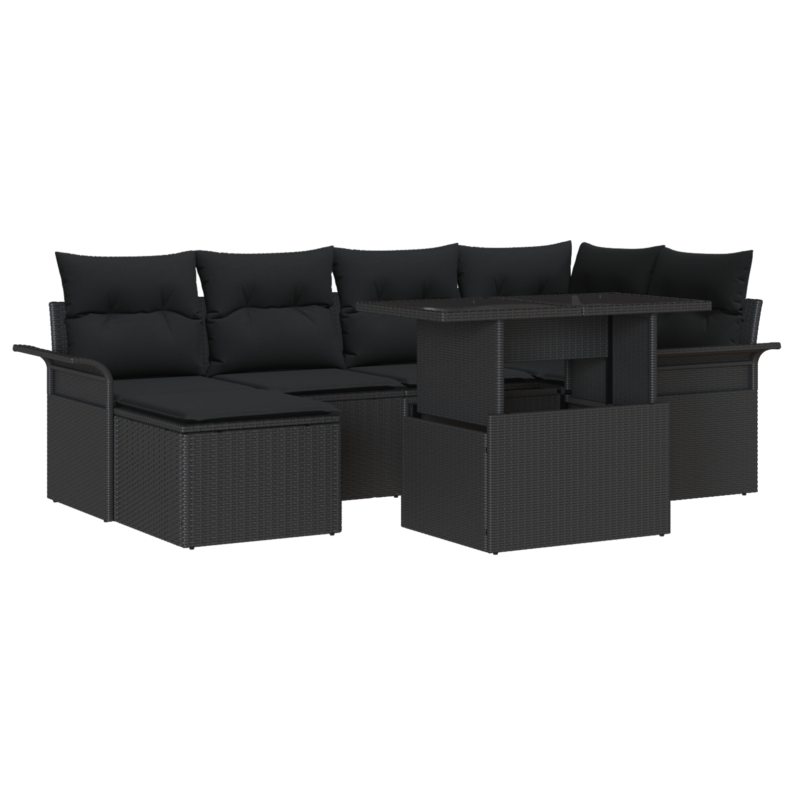 Set de canapele pentru grădină cu pernă 7 pcs Negru Rattan poli