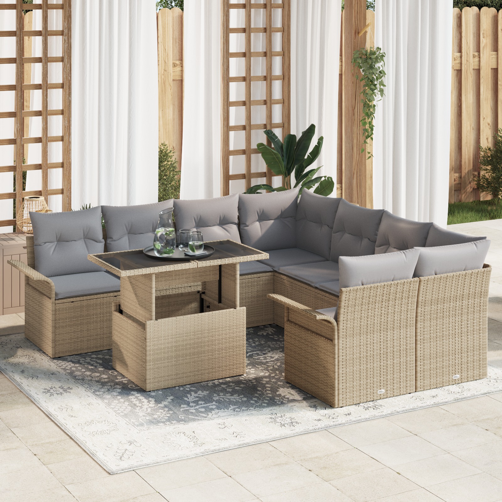 Set de canapele pentru grădină cu pernă 9 pcs Bej Rattan poli