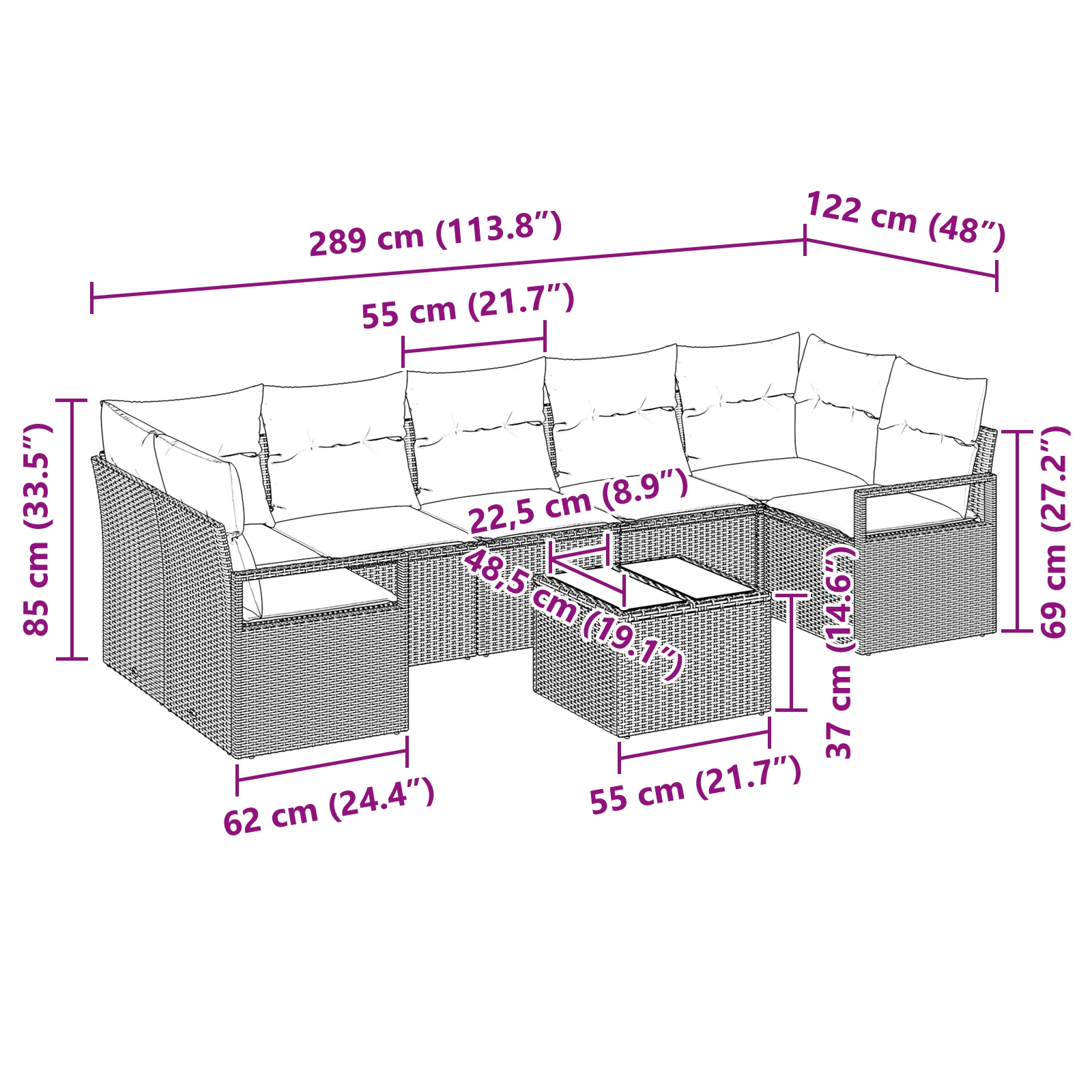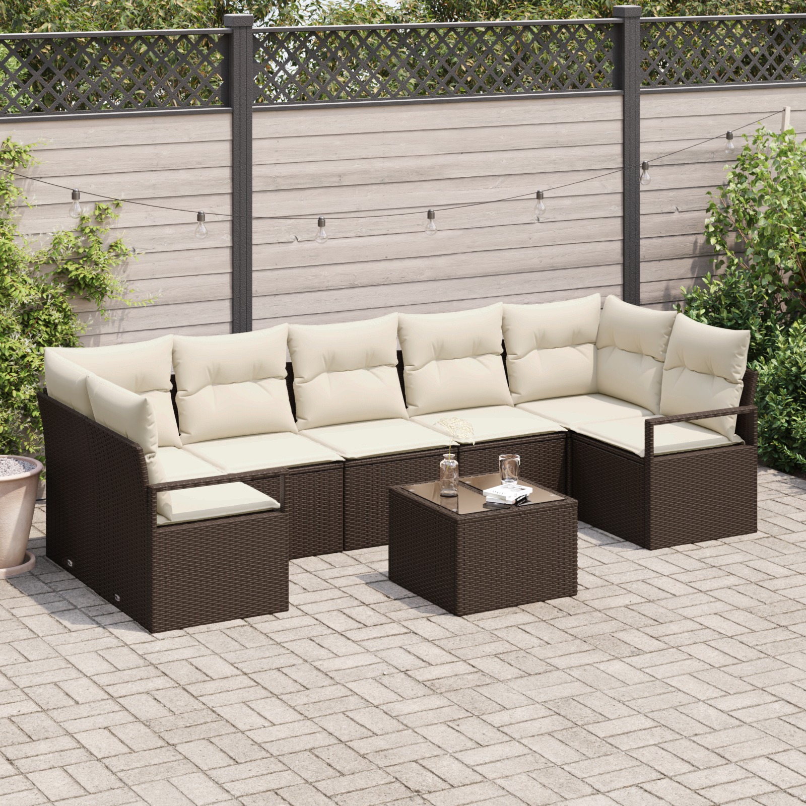 Set de canapele pentru grădină cu pernă 8 pcs Maro și Crem