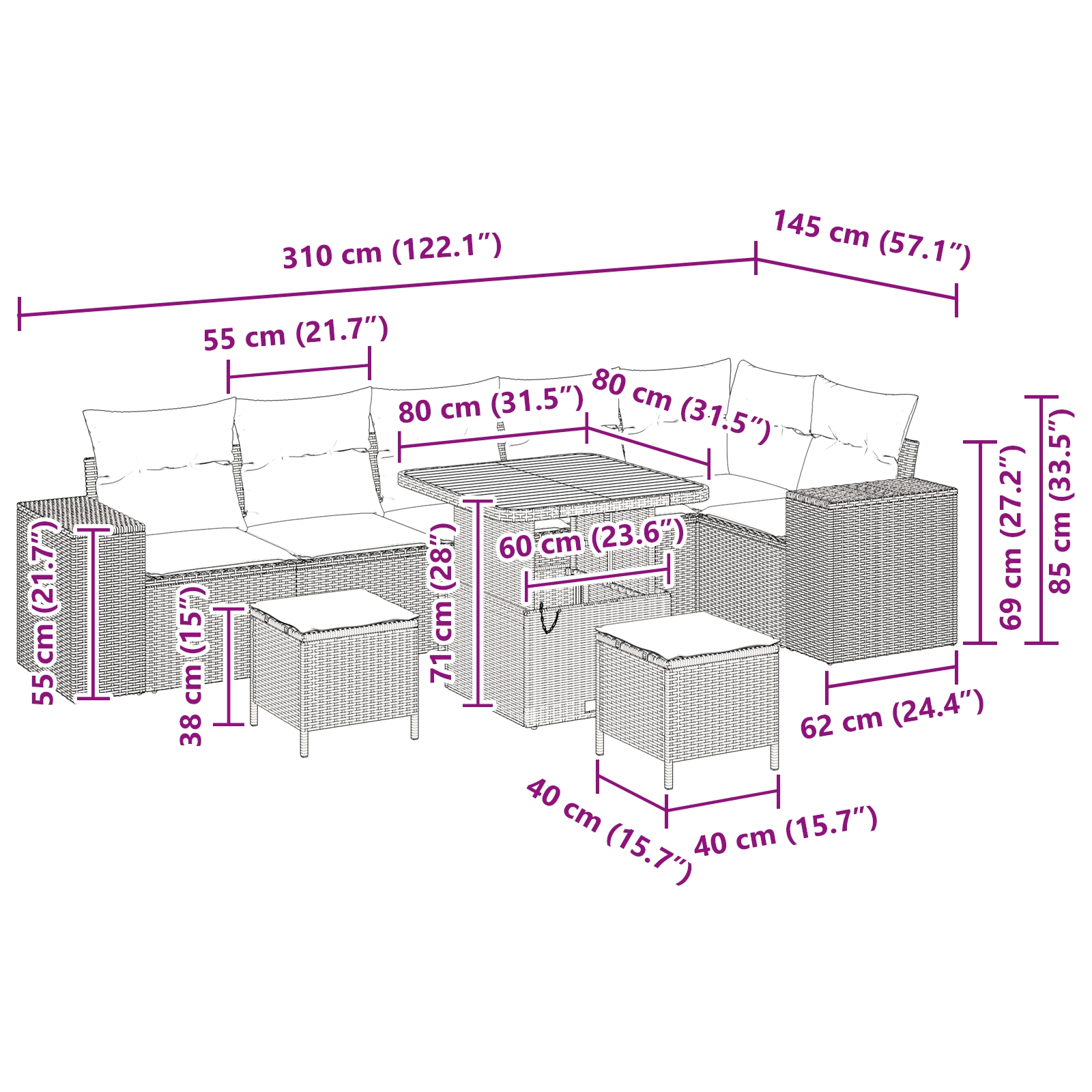 Set de canapele pentru grădină 9 pcs Negru poliratan