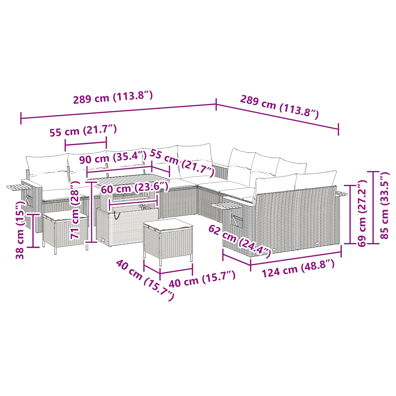 Set de canapele pentru grădină cu pernă 13 pcs bej și crem