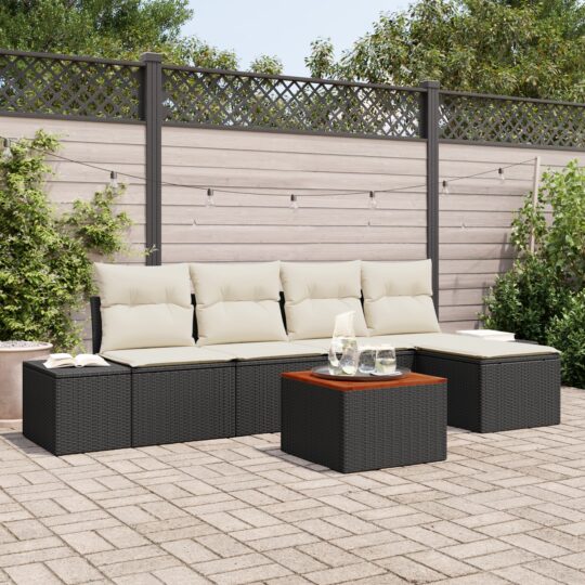 Set de canapele pentru grădină cu pernă 6 pcs Negru Rattan poli