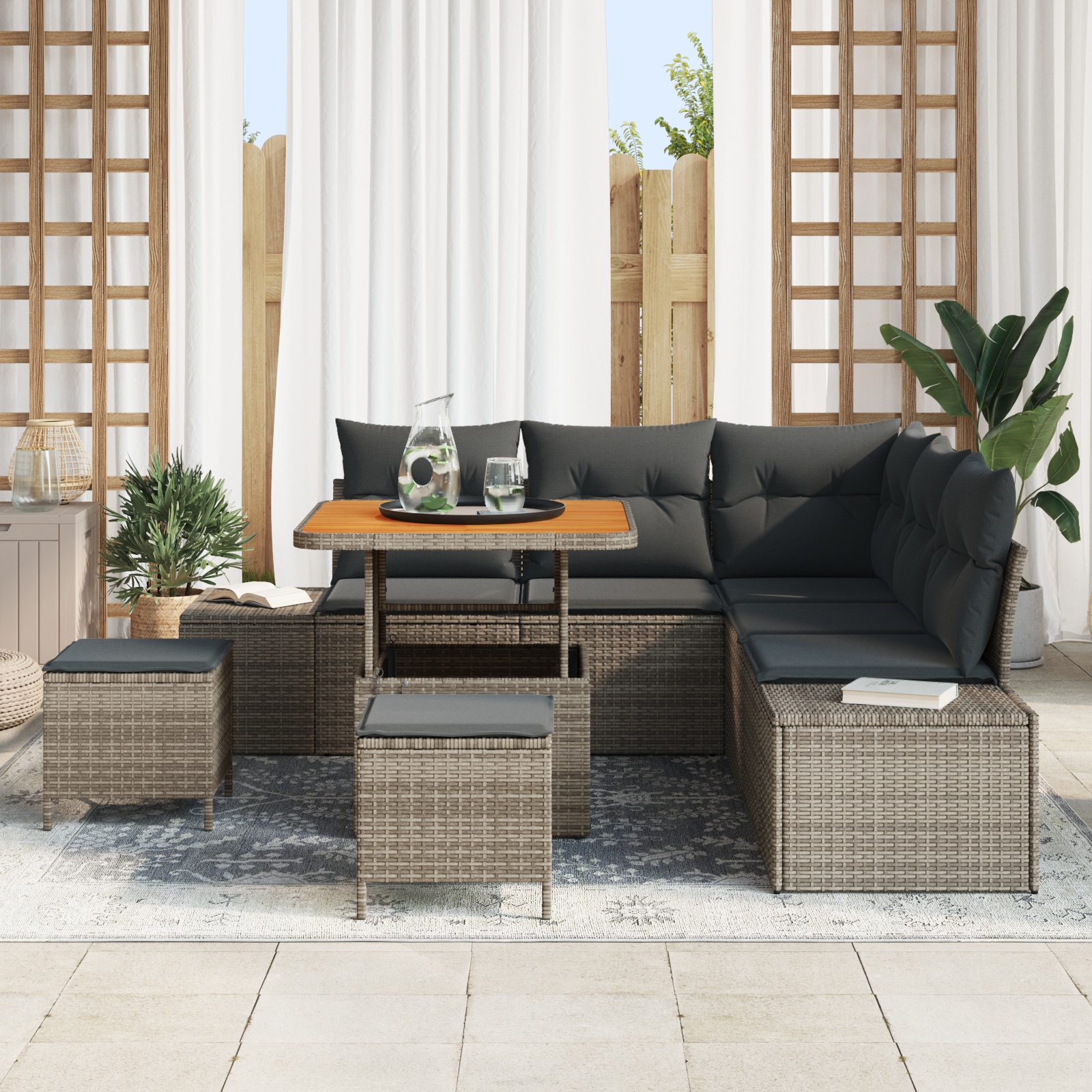 Set de canapele pentru grădină cu pernă 8 pcs Gri Rattan poli