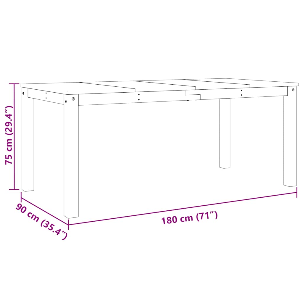 - Dimensiuni masă: 180 x 90 x 75 cm (L x l x î)