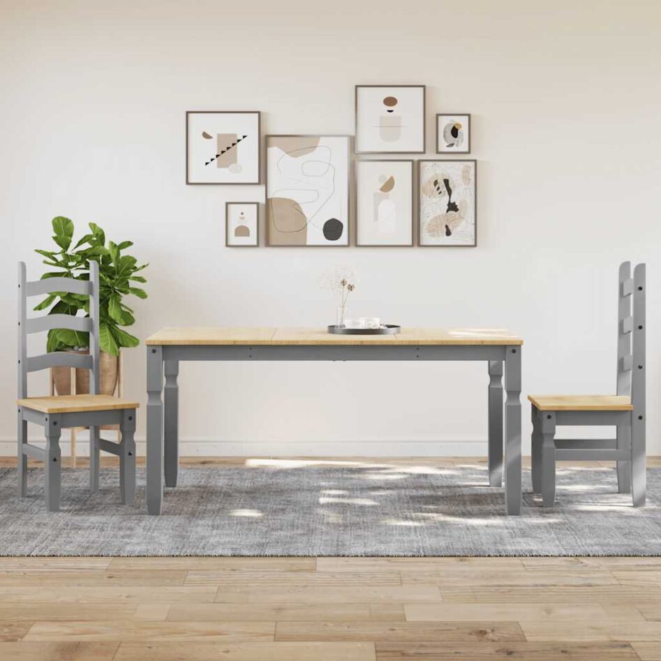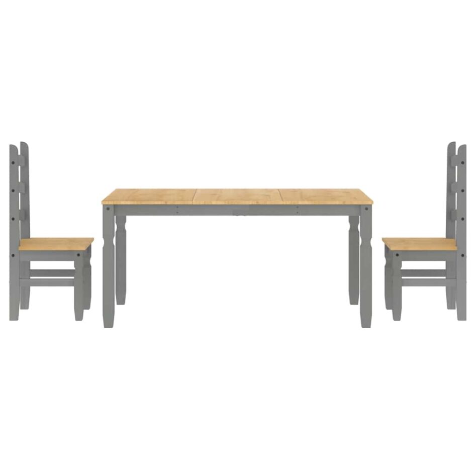 Set de sufragerie din 3 piese Panama din lemn masiv de pin gri