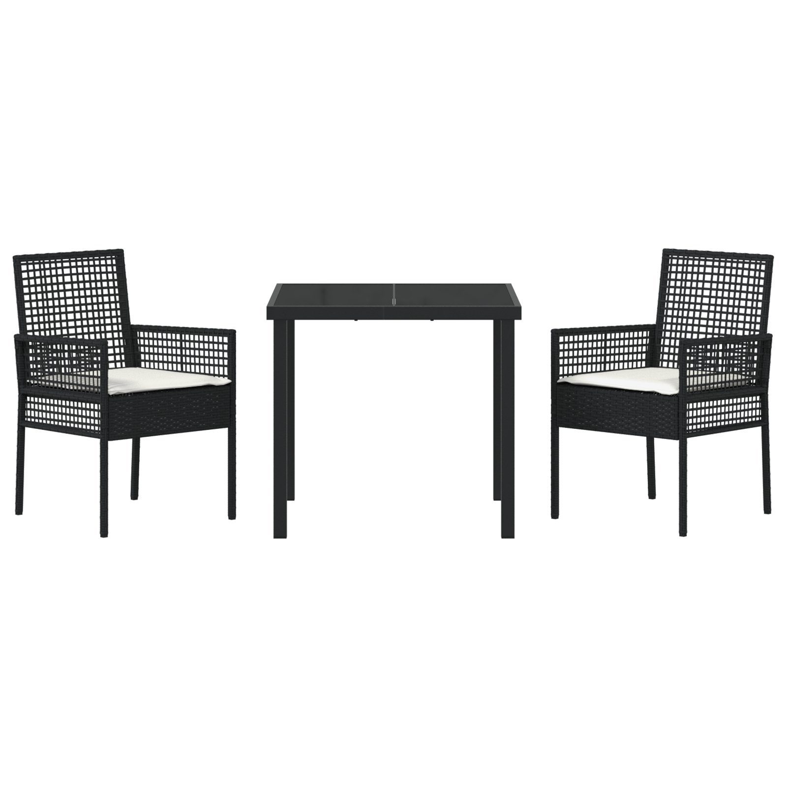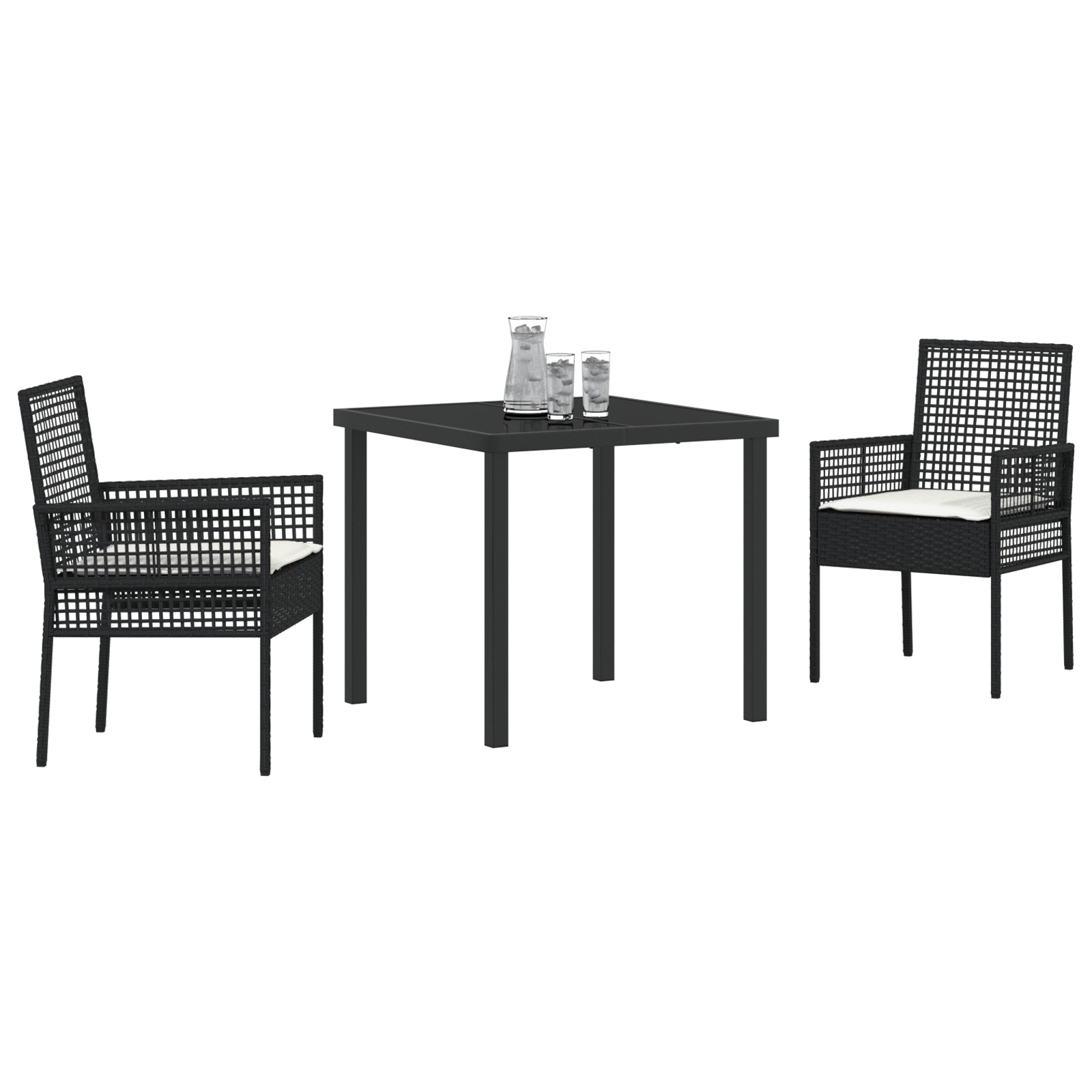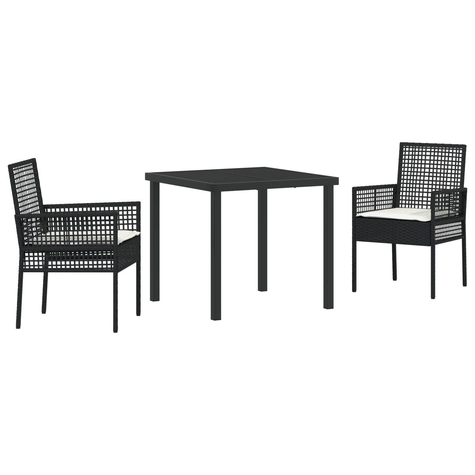 Set de masă pentru grădină cu pernă 3 pcs Negru Rattan poli