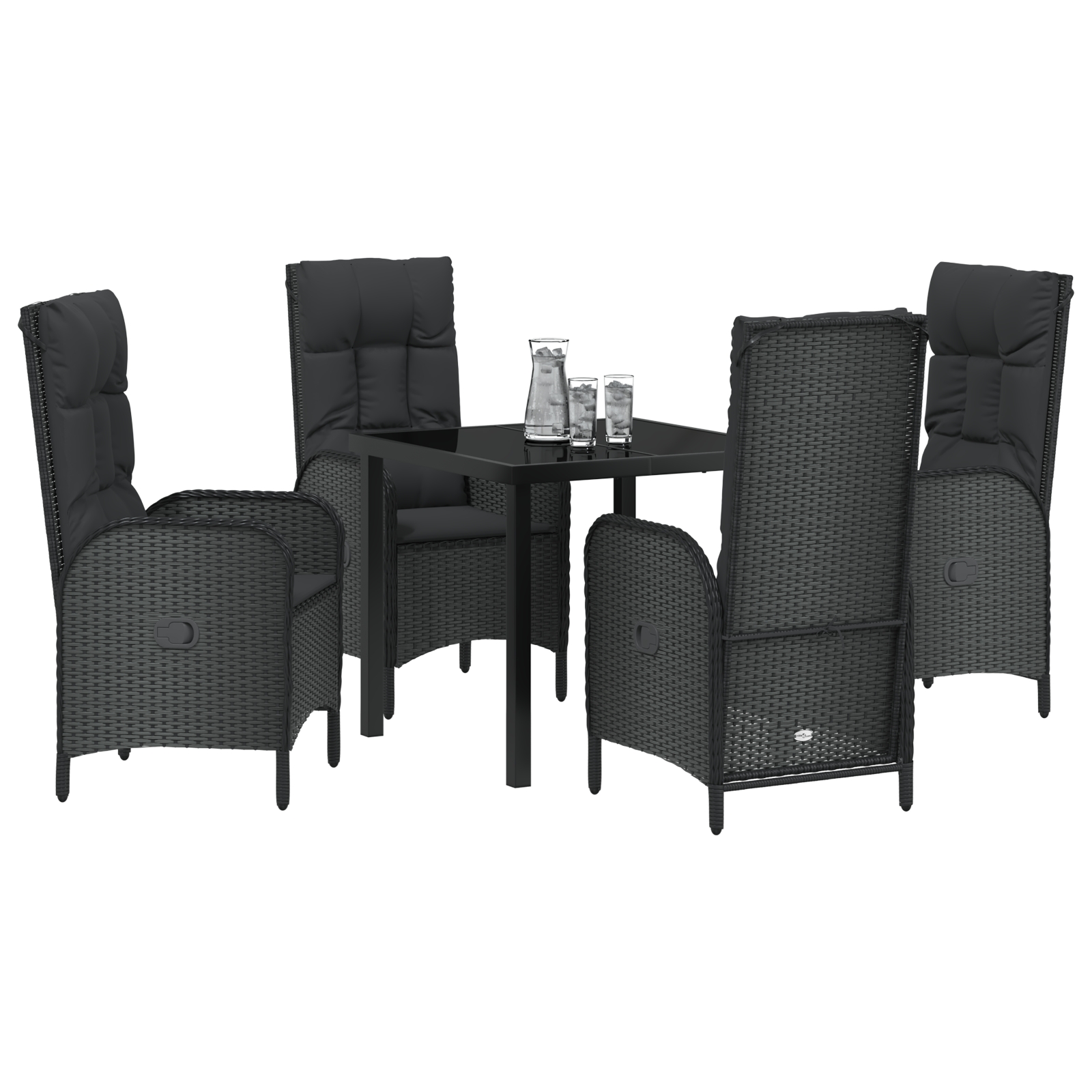 Set de masă pentru grădină cu pernă 5 pcs Negru Rattan poli