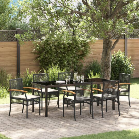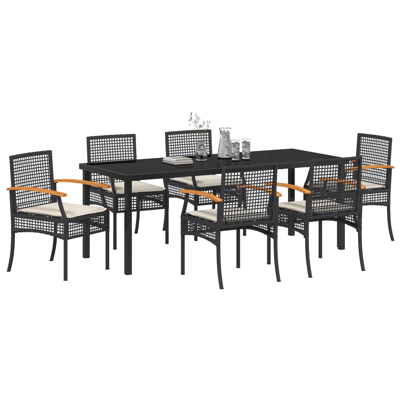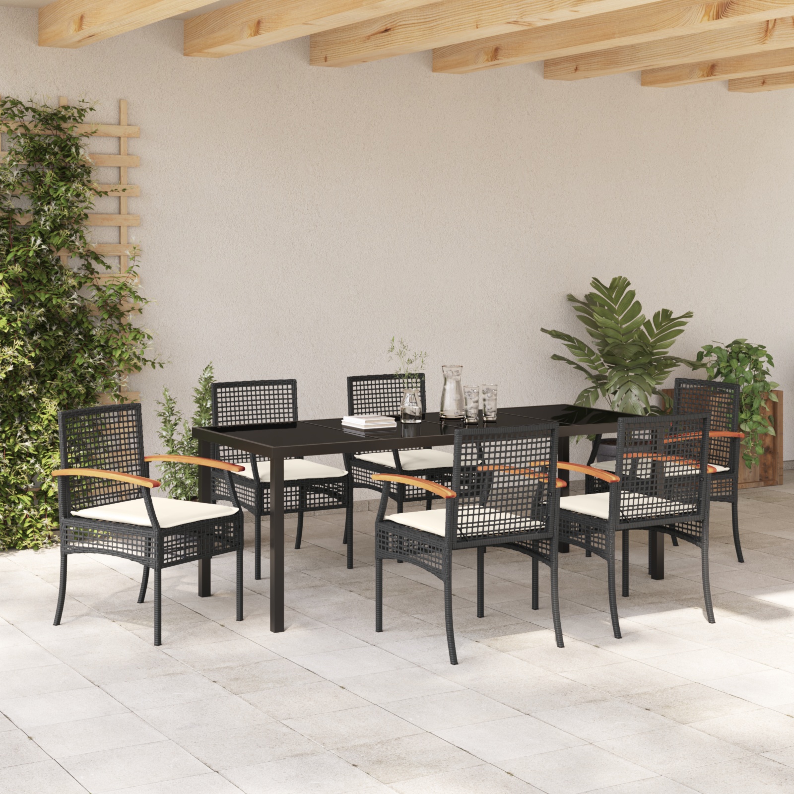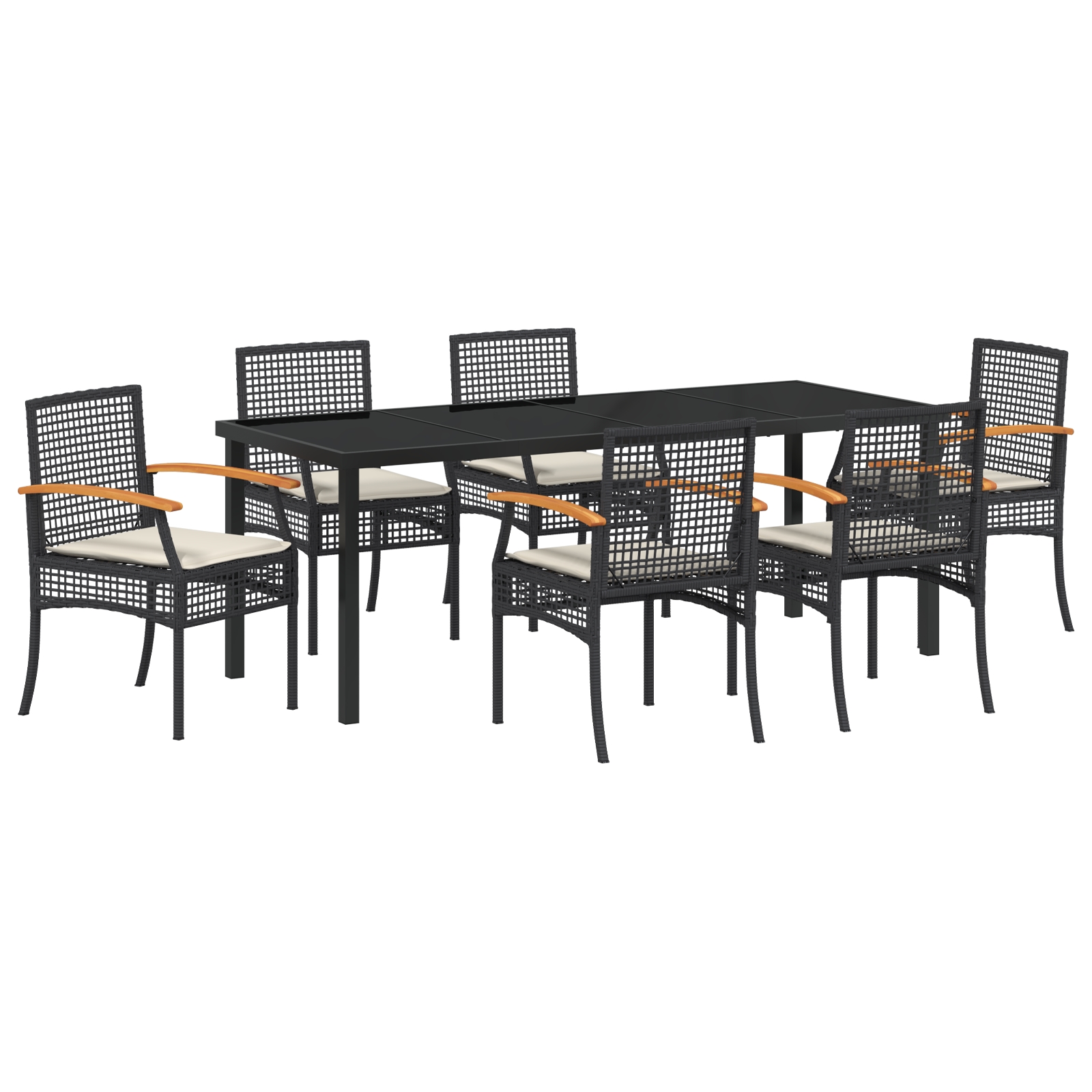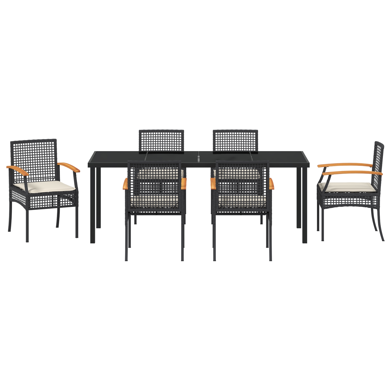 Set Dining Grădină 7 Piese cu Pernă Negru Poliratan