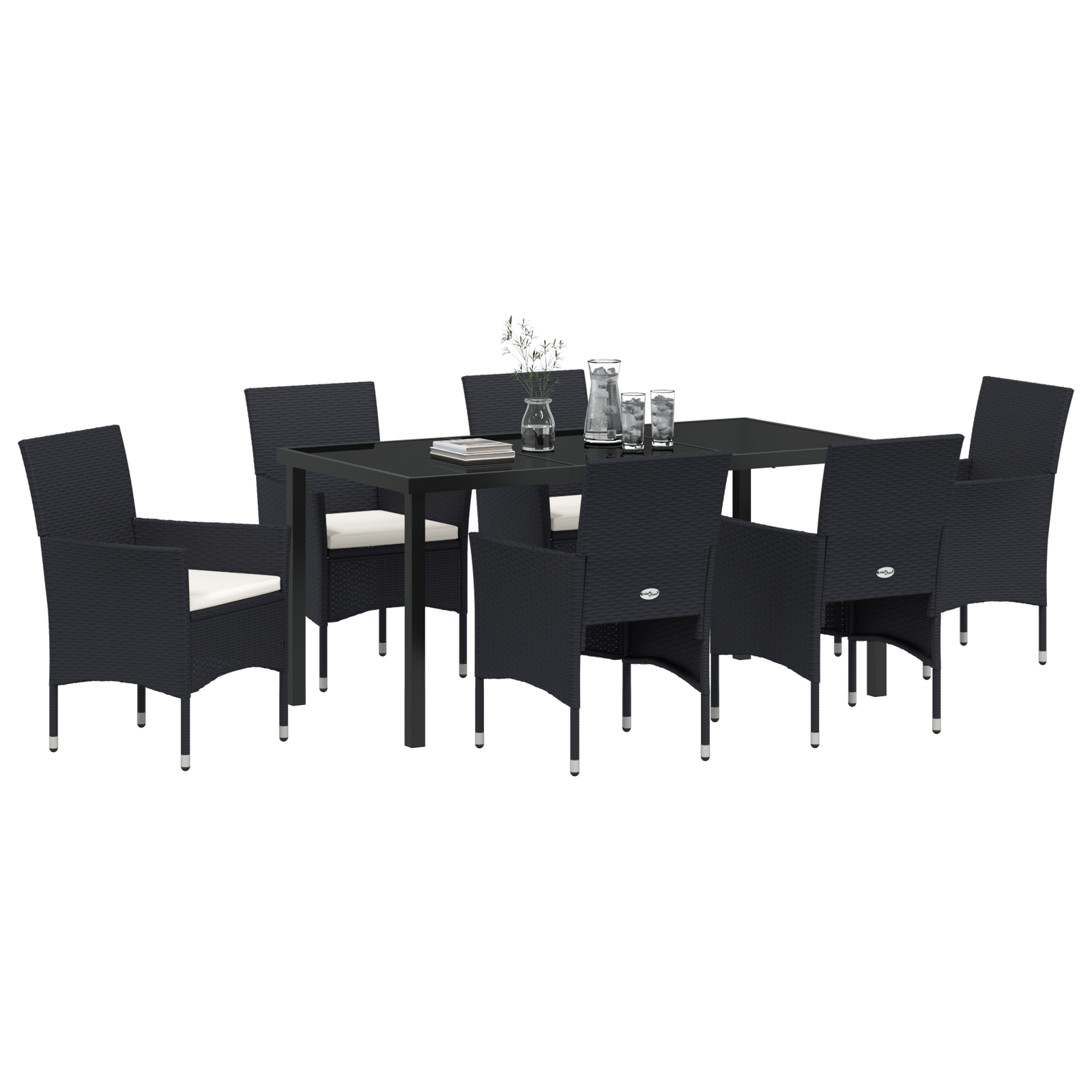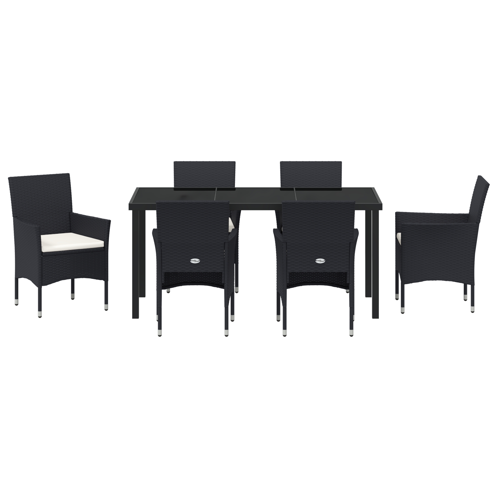 - 6 x scaune de grădină, 1 x masă de grădină, 6 x perne pentru șezut