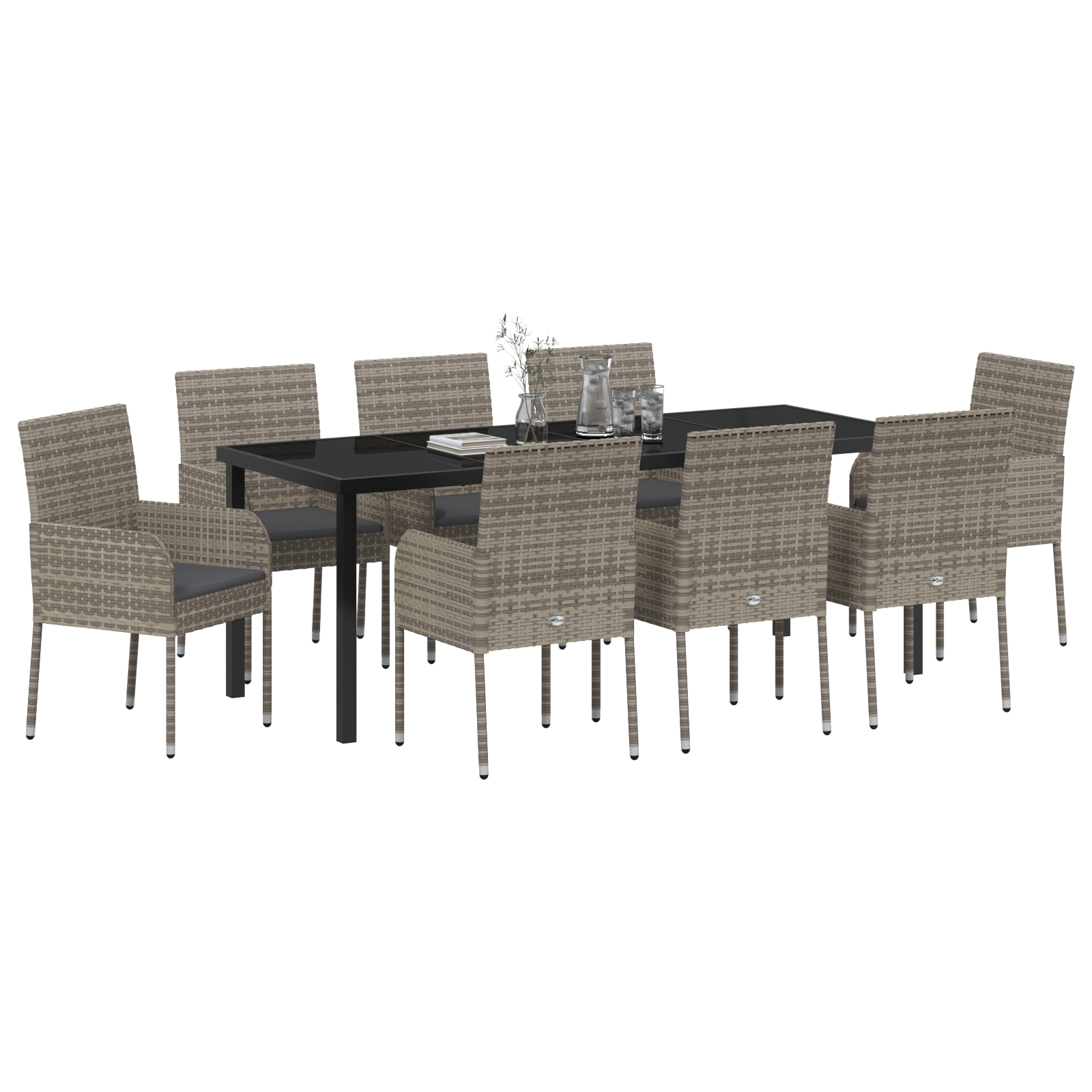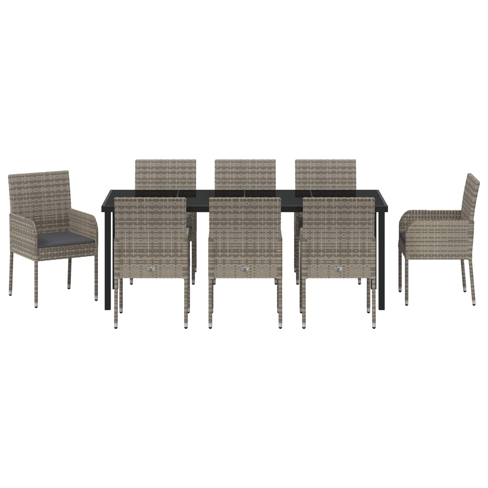 Set Dining Grădină 9 piese cu perne gri Poliratan