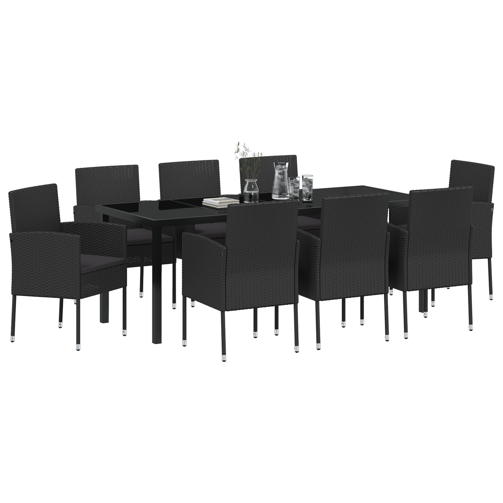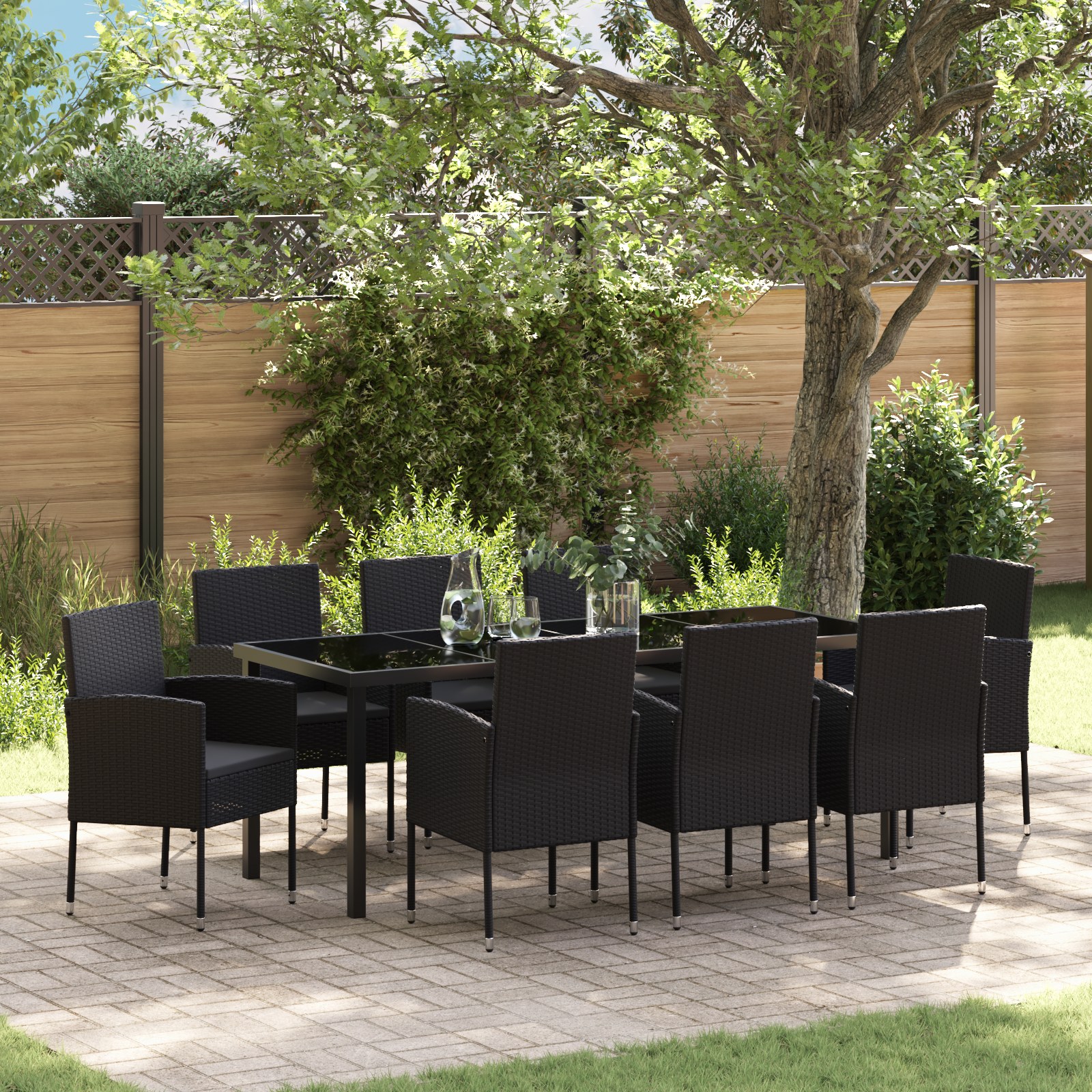 Set Dining Grădină cu Perni Negre din Ratan Poli