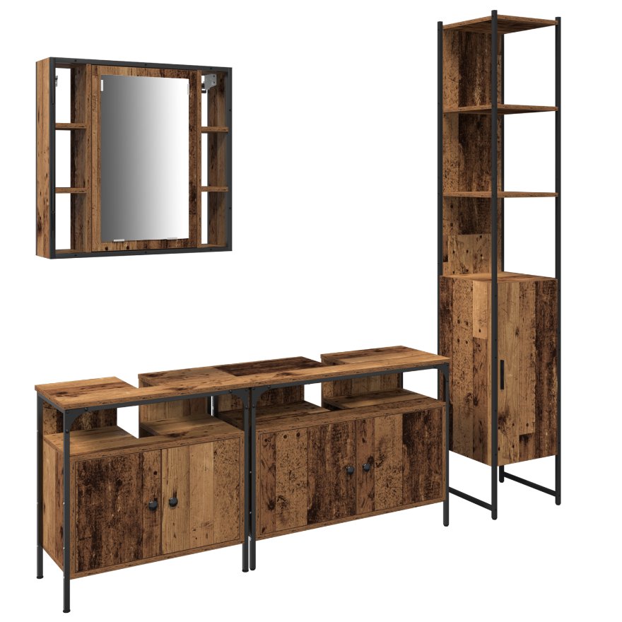 Set dulap baie cu raft 4 pcs Lemn vechi 33 x 33 x 185.5 cm