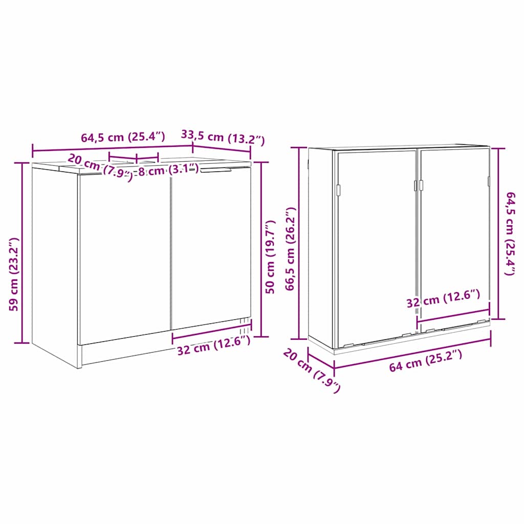 • 1 x Cabinet chiuvetă: 64,5 x 33,5 x 59 cm (LxWxH)