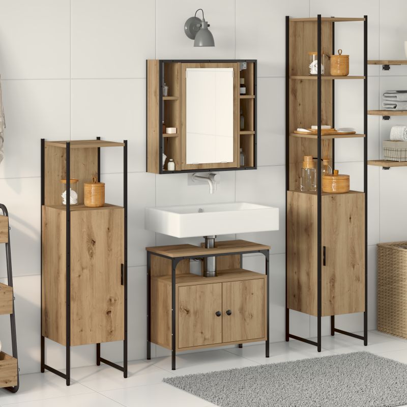 Set dulap baie cu ușă 4 pcs stejar artizanal 33 x 33 x 185.5 cm