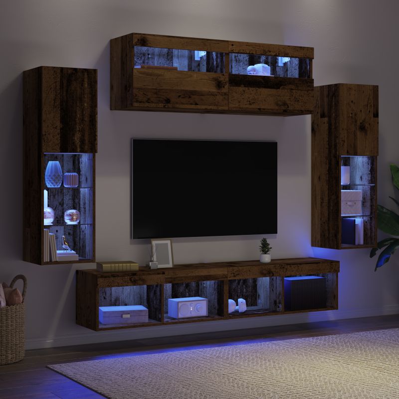 Set Dulap pentru Televizor Montat pe Perete 6 pcs Lemn vechi