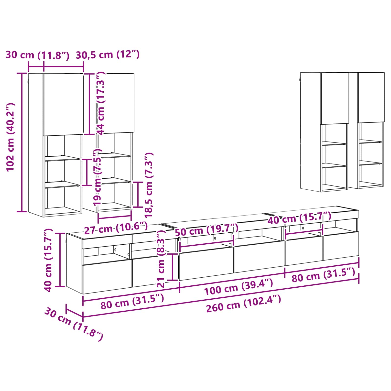 • 4 x dulap de perete TV: 30.5 x 30 x 102 cm (LxWxH)