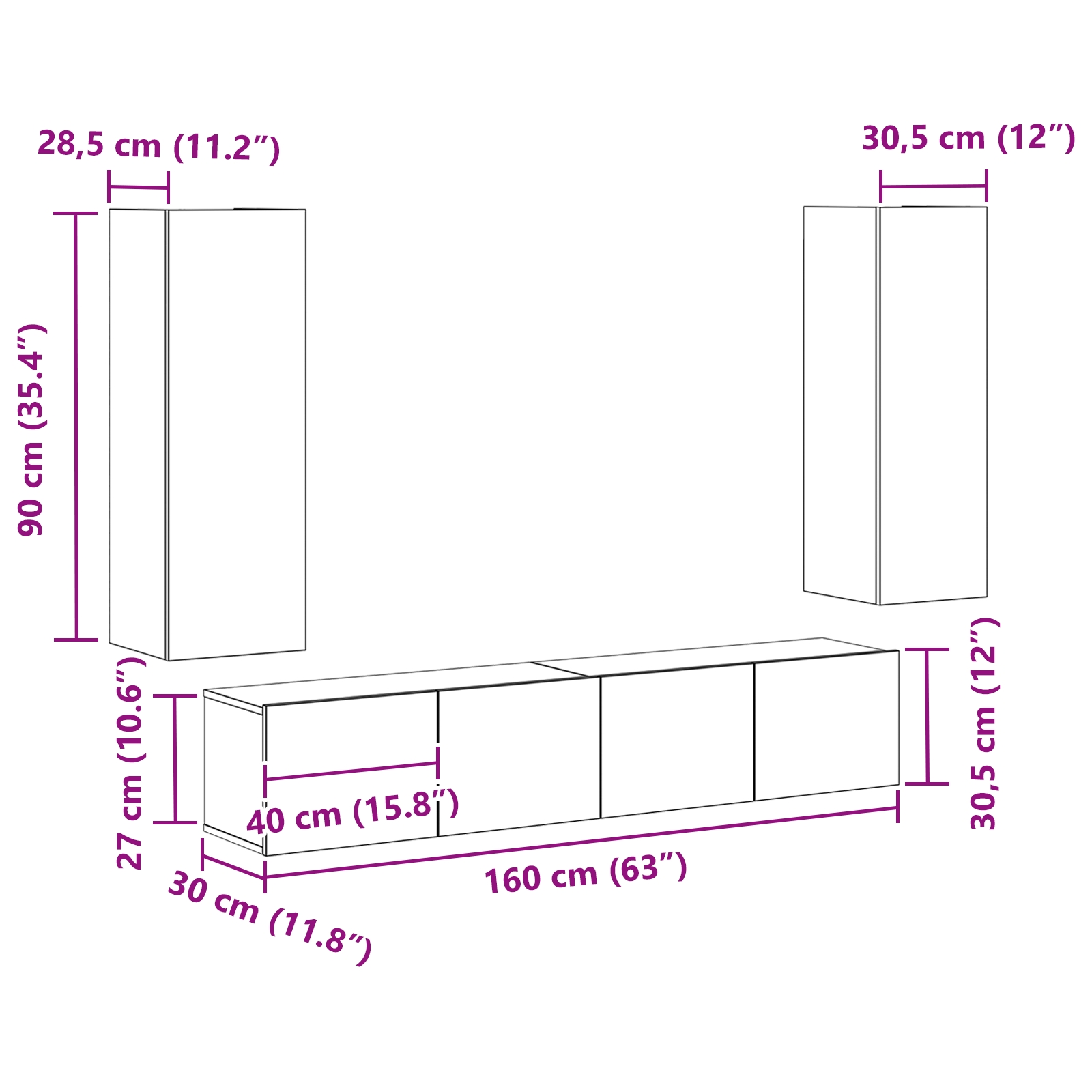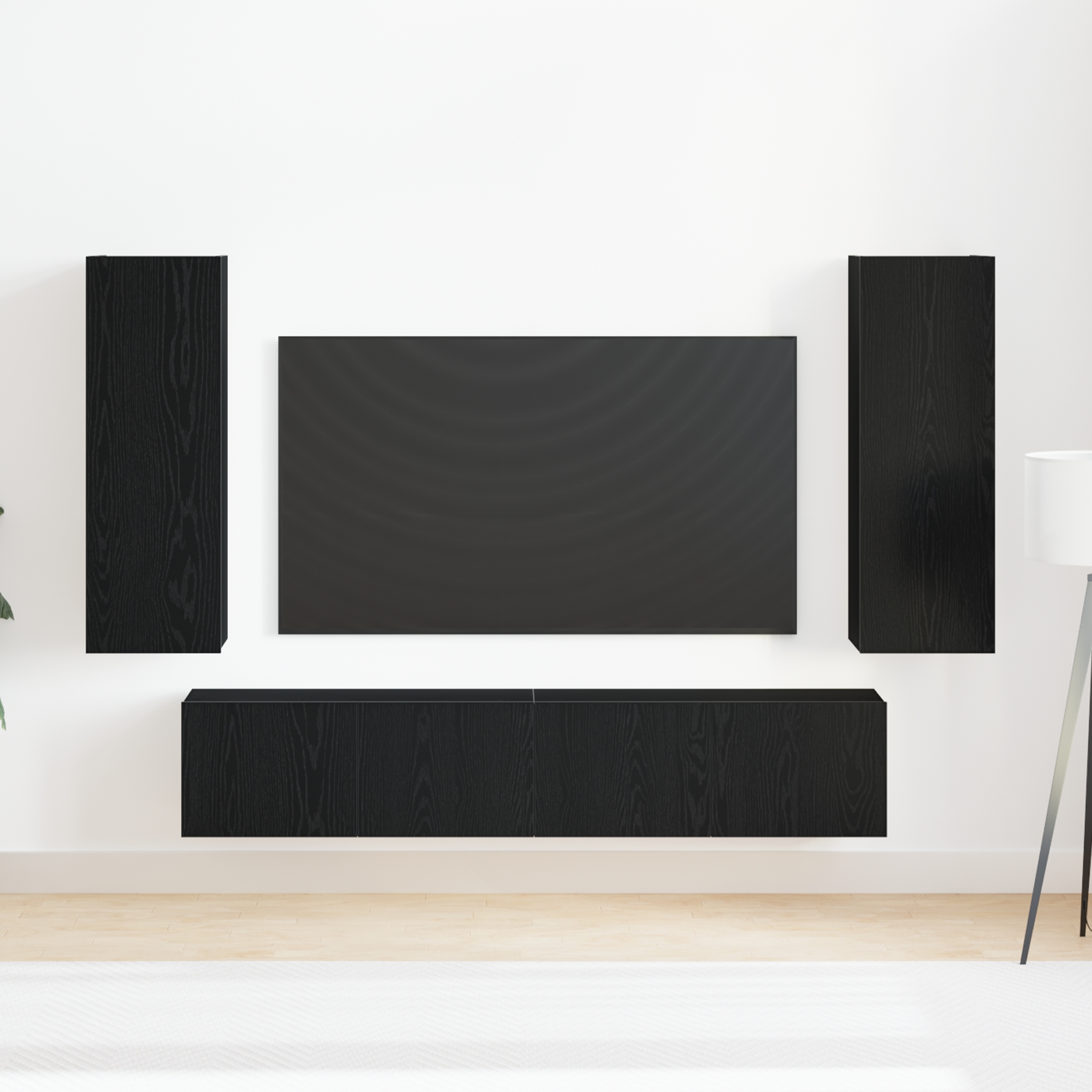 Set TV – montat pe perete, lemn de stejar negru