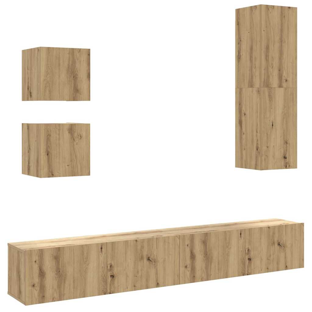 Set dulap TV 5 piese montat pe perete Stejar artizanal