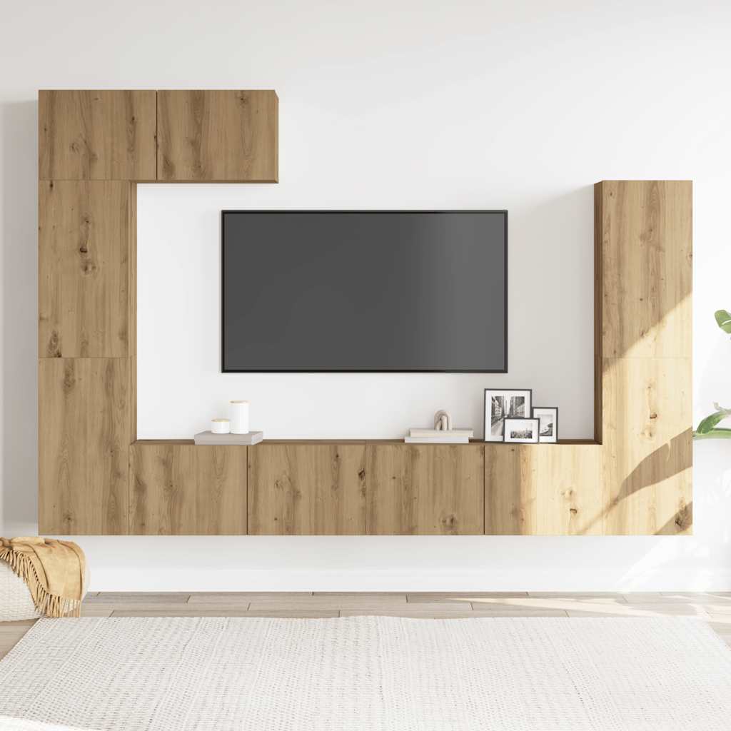 Set dulap TV 5 piese montat pe perete Stejar artizanal