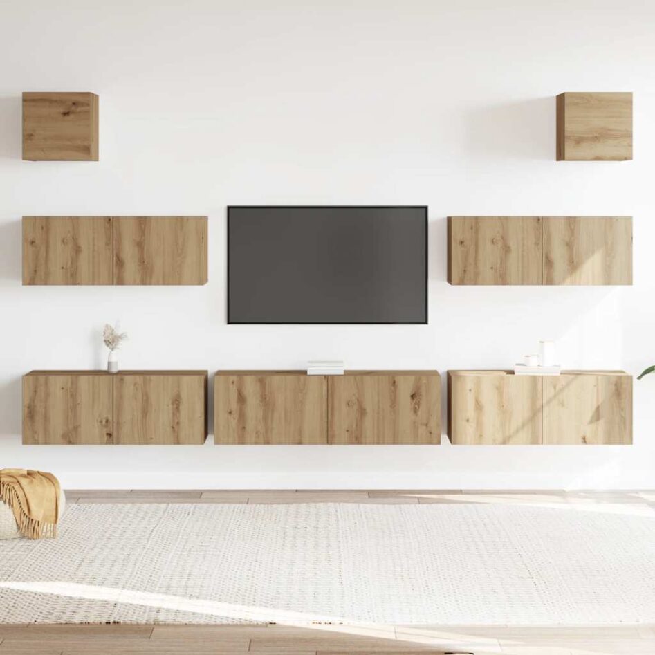 Set dulap TV 7 piese montat pe perete Stejar artizanal